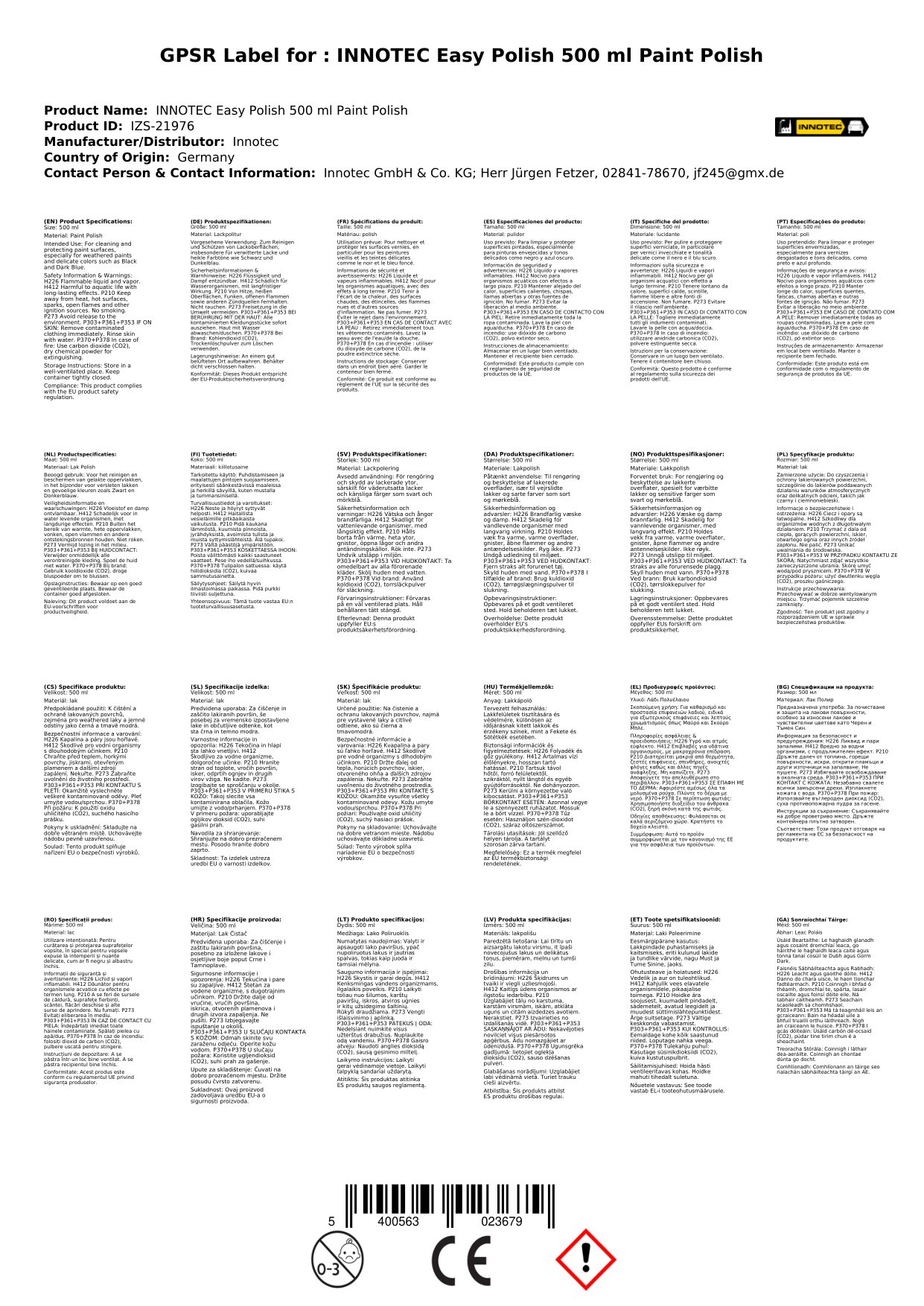 Innotec Easy Polish Lackpolitur 500 ml