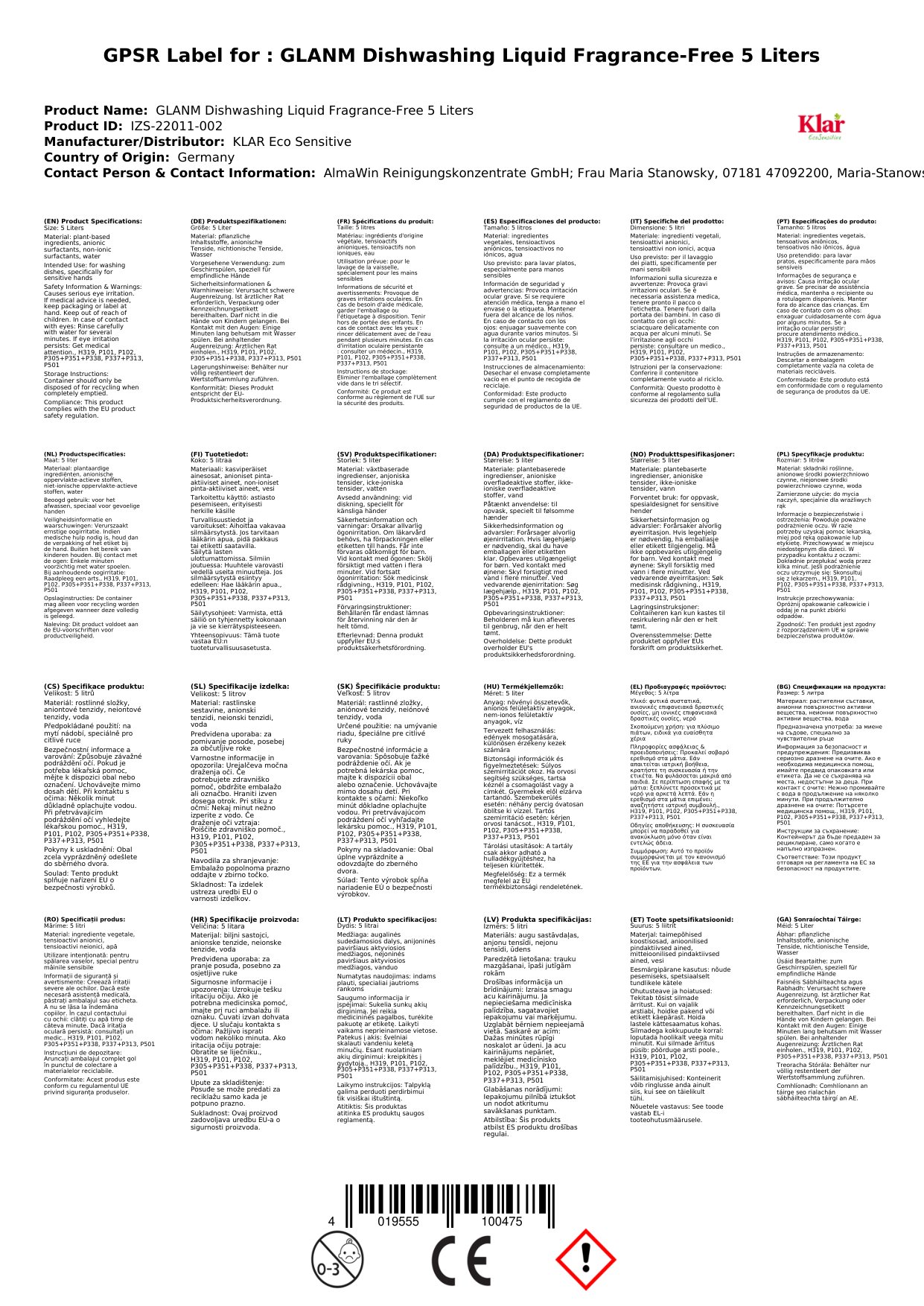 Stellen Sie eine Frage, um mehr über das Produkt zu erfahrenKlar Spülmittel sensitive ohne Duft 5 Liter