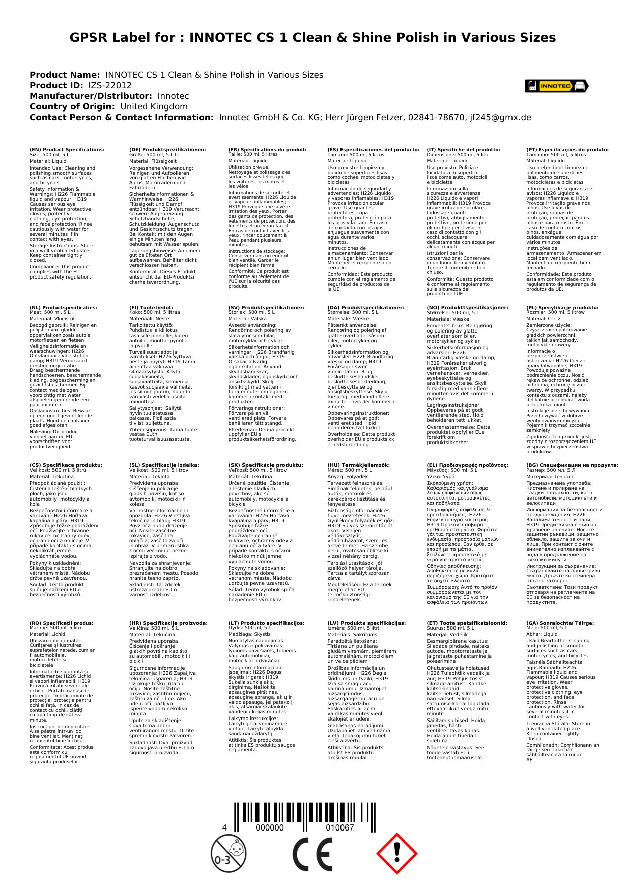 INNOTEC CS 1 Clean & Shine Hochglanzpolitur in verschieden Größengebinde