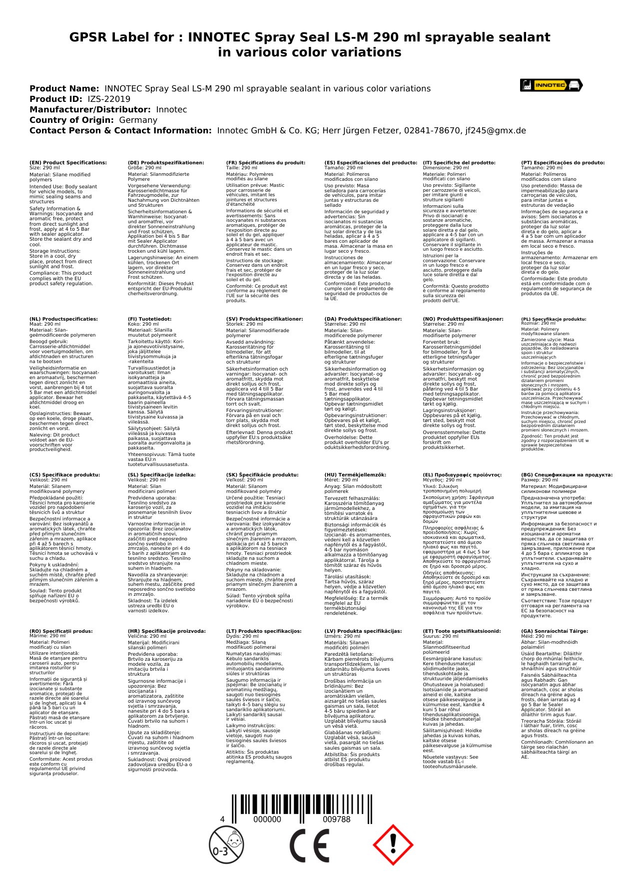 INNOTEC Spray Seal LS-M 290 ml sprühbare Dichtmasse in verschiedenen Farbvarianten