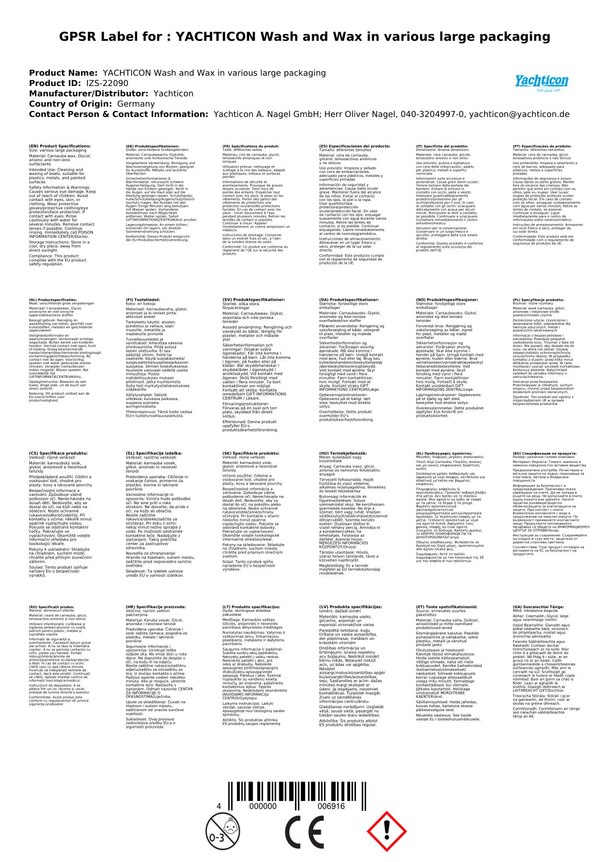 YACHTICON Wash und Wax in verschiedenen Größengebinden