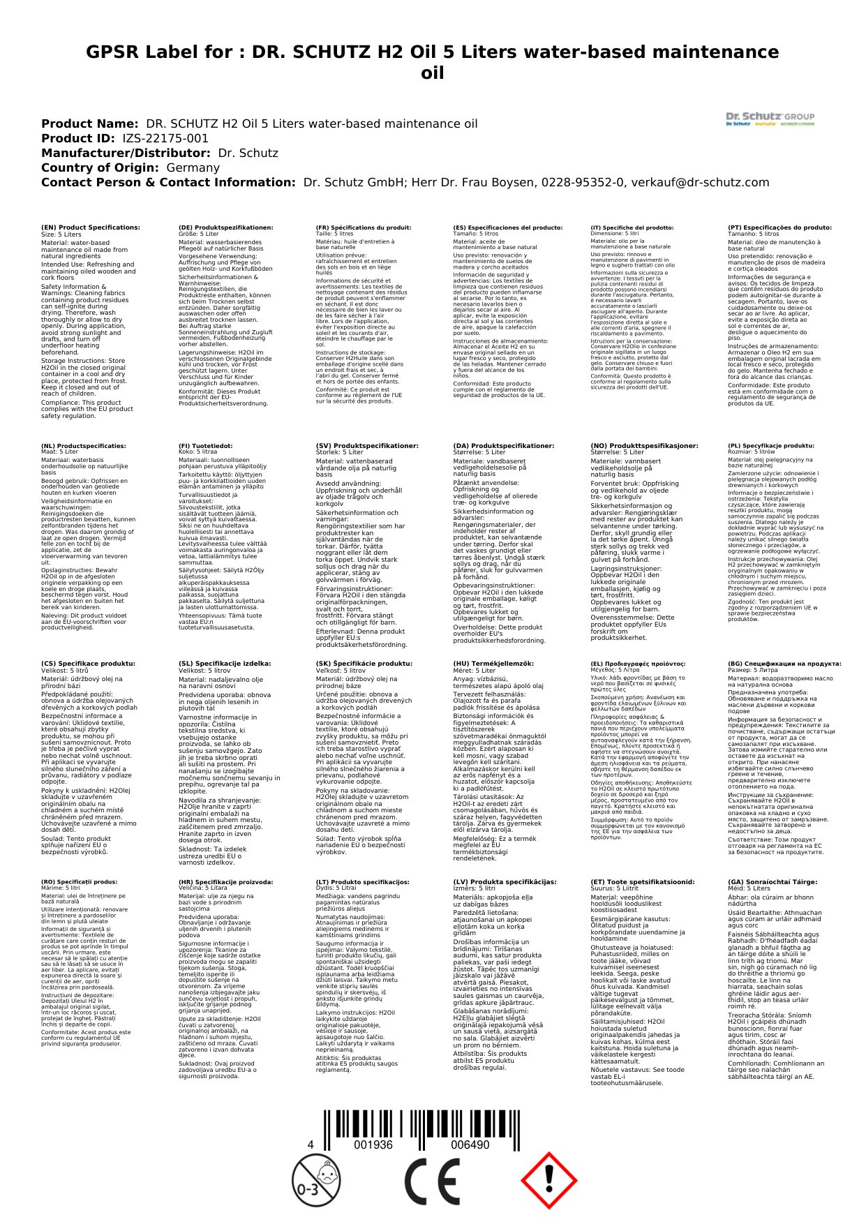 Stellen Sie eine Frage, um mehr über das Produkt zu erfahrenDr. Schutz H2Oil (wasserbasierendes Pflegeöl) 5 Liter