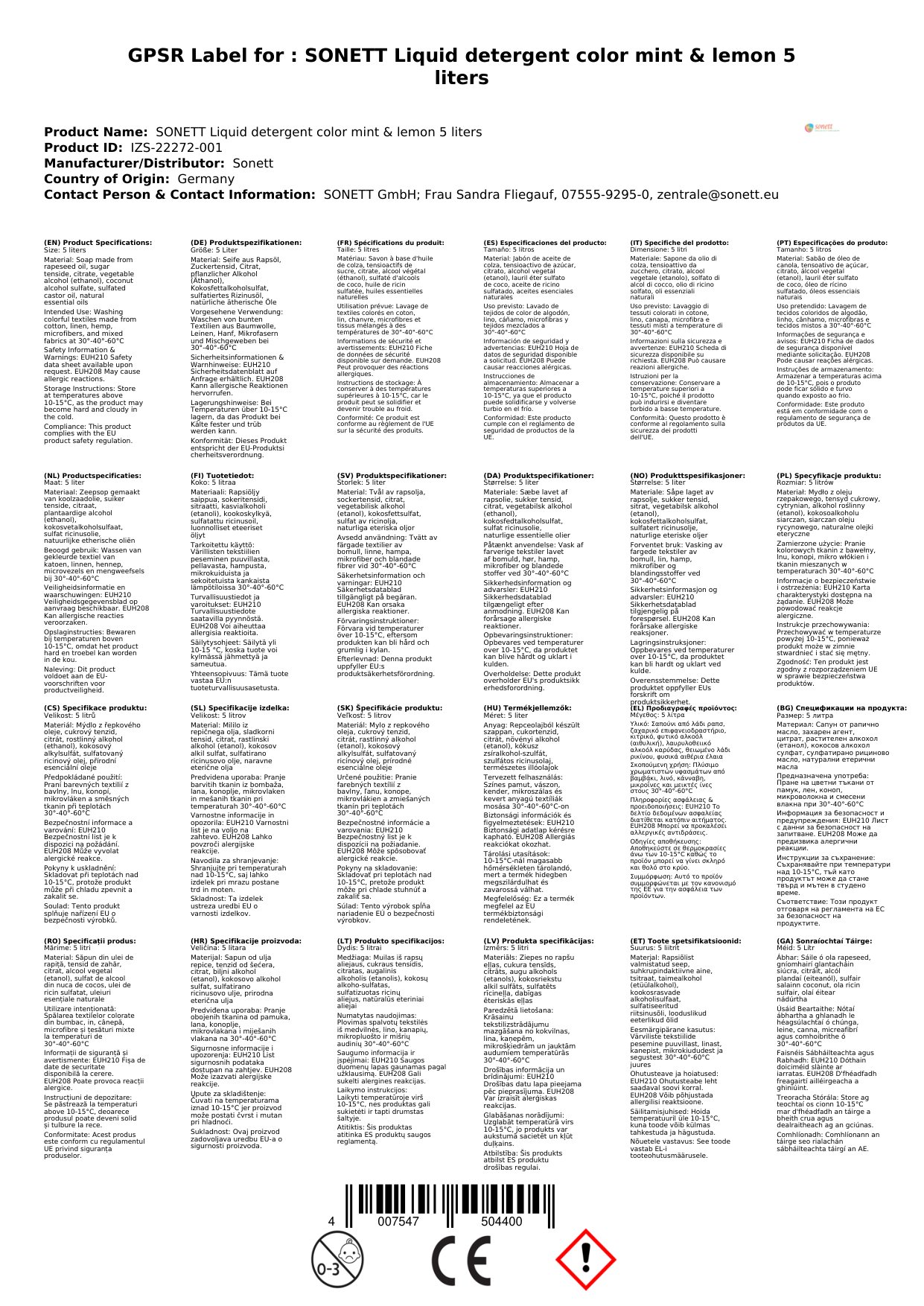 Sonett Waschmittel COLOR Mint und Lemon 5 Liter
