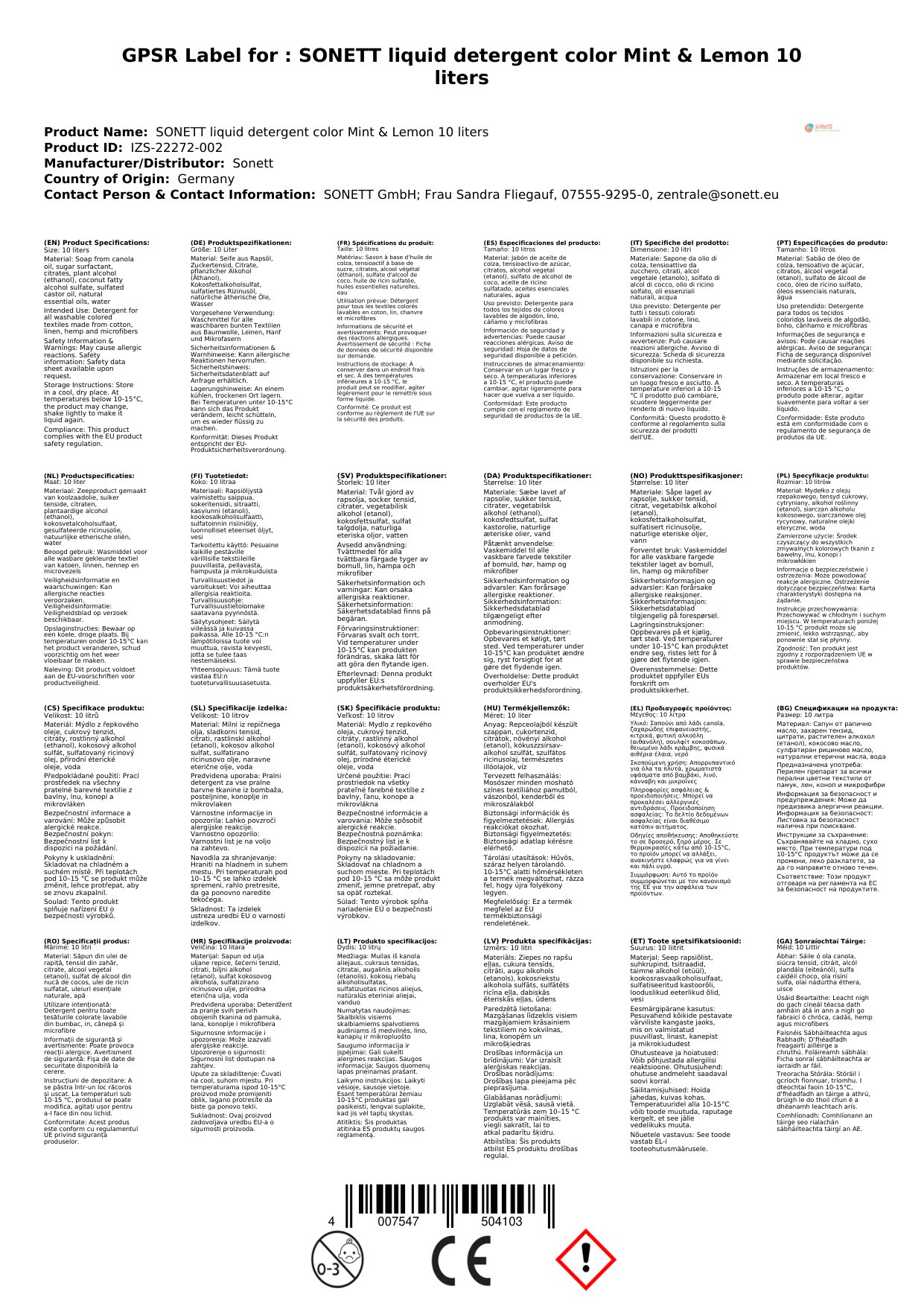 EUH210 Sicherheitsdatenblatt auf Anfrage erhältlich.