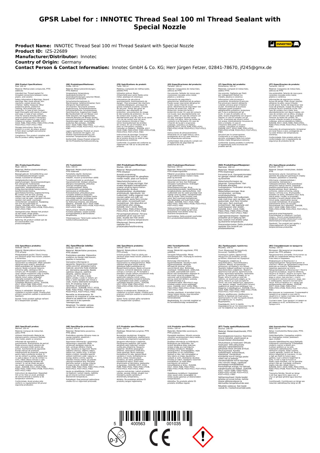 INNOTEC Thread Seal 100 ml Gewindedichtmittel incl. Spezialdüse