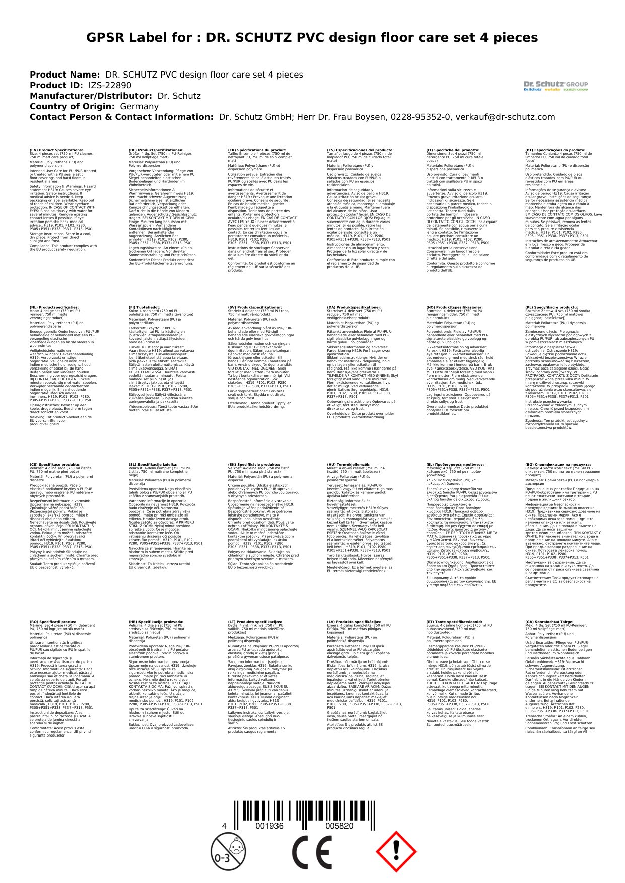 Stellen Sie eine Frage, um mehr über das Produkt zu erfahrenDr. Schutz Designboden Pflegeset 4 teilig für PVC Designböden im Wohnbereich