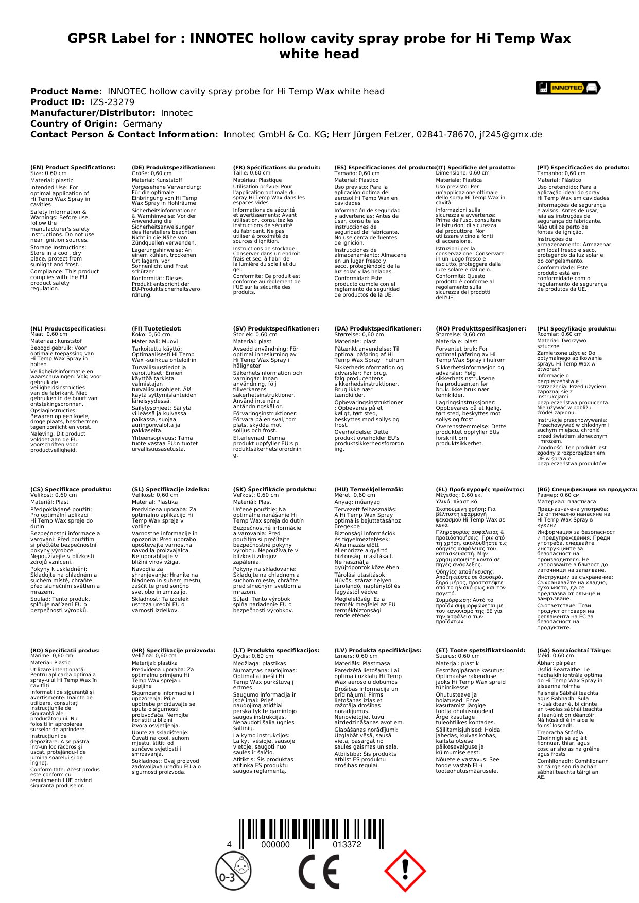 EU-Verantwortliche Name: Innotec GmbH & Co. KG; Herr Jürgen Fetzer