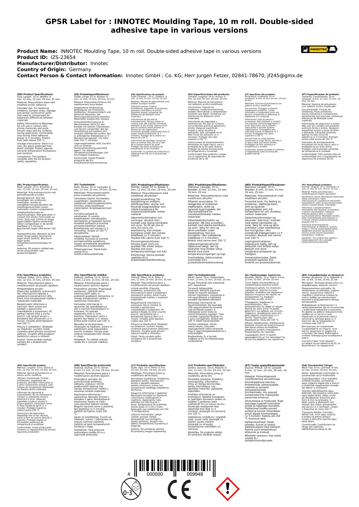 INNOTEC Moulding Tape, 10 mtr. Rolle Doppelklebeband in verschiedenen Ausführungen