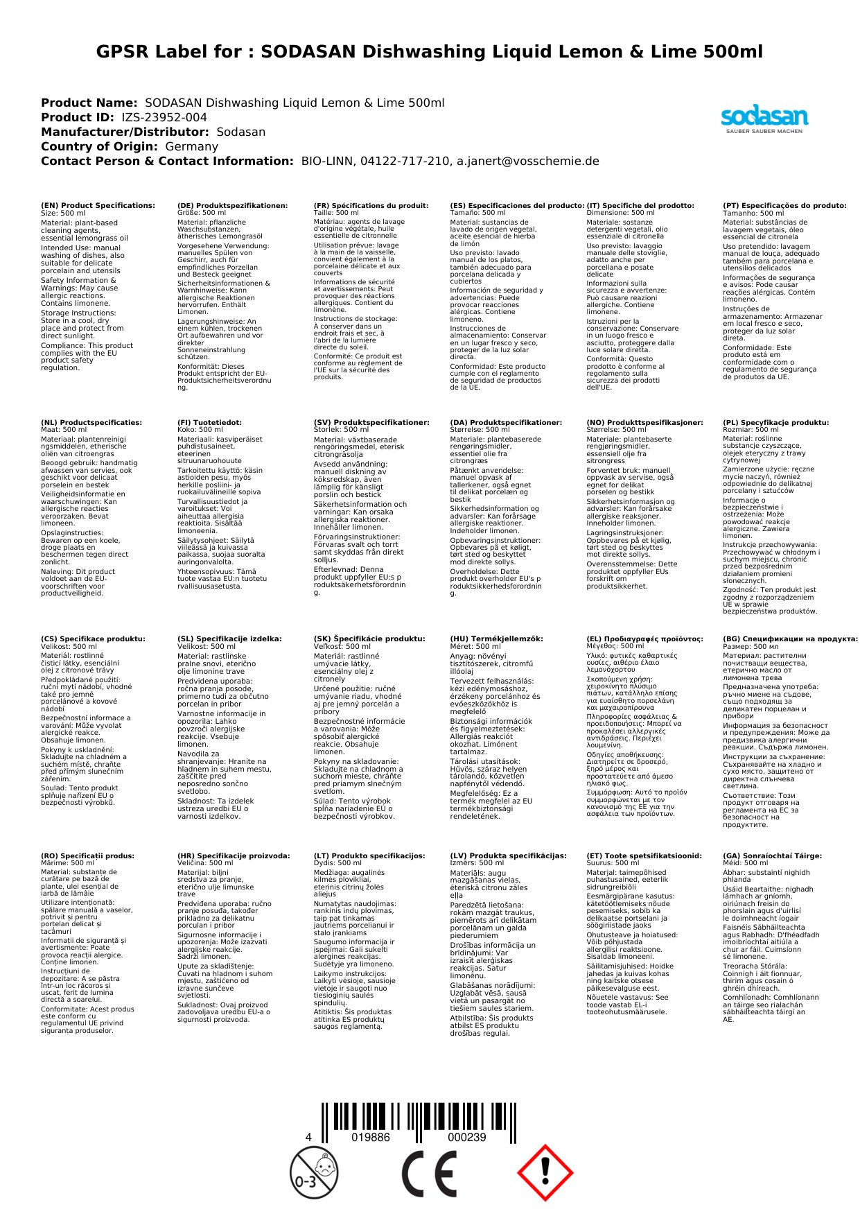 Enthält Limonen. Kann allergische Reaktionen hervorrufen.