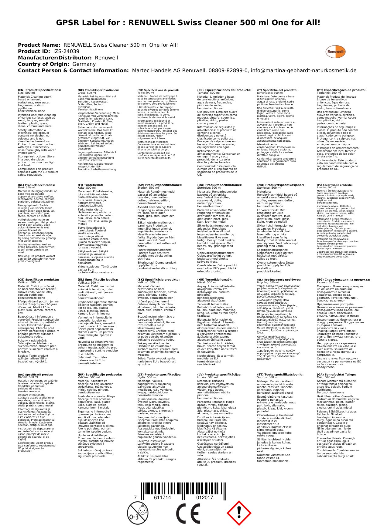 RENUWELL Swiss Reiniger 500 ml Einer für Alles!
