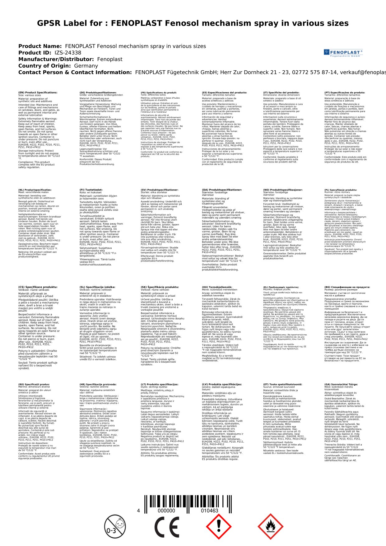 Fenosol BESCHLÄGESPRAY - Spezial Wartungs- und Pflegemittel für Beschlag und Mechanik an Fenstern, Türen, Toren