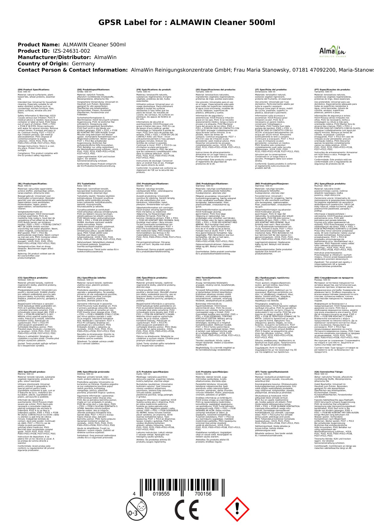 Aus der Kombination hautmilder, natürlicher Tenside und pflanzlich rückfettenden Inhaltsstoffen sorgt der Almawin Haushalt Reiniger für ein hervorragendes Reinigungsergebnis und schont dabei die Haut. Er eignet sich besonders für alle wasserfesten Oberflächen wie z.B. Arbeitsplatten, Küchenmöbel, Fliesen, Kunststoff-Oberflächen, Fenstersimse und Fußböden aller Art.