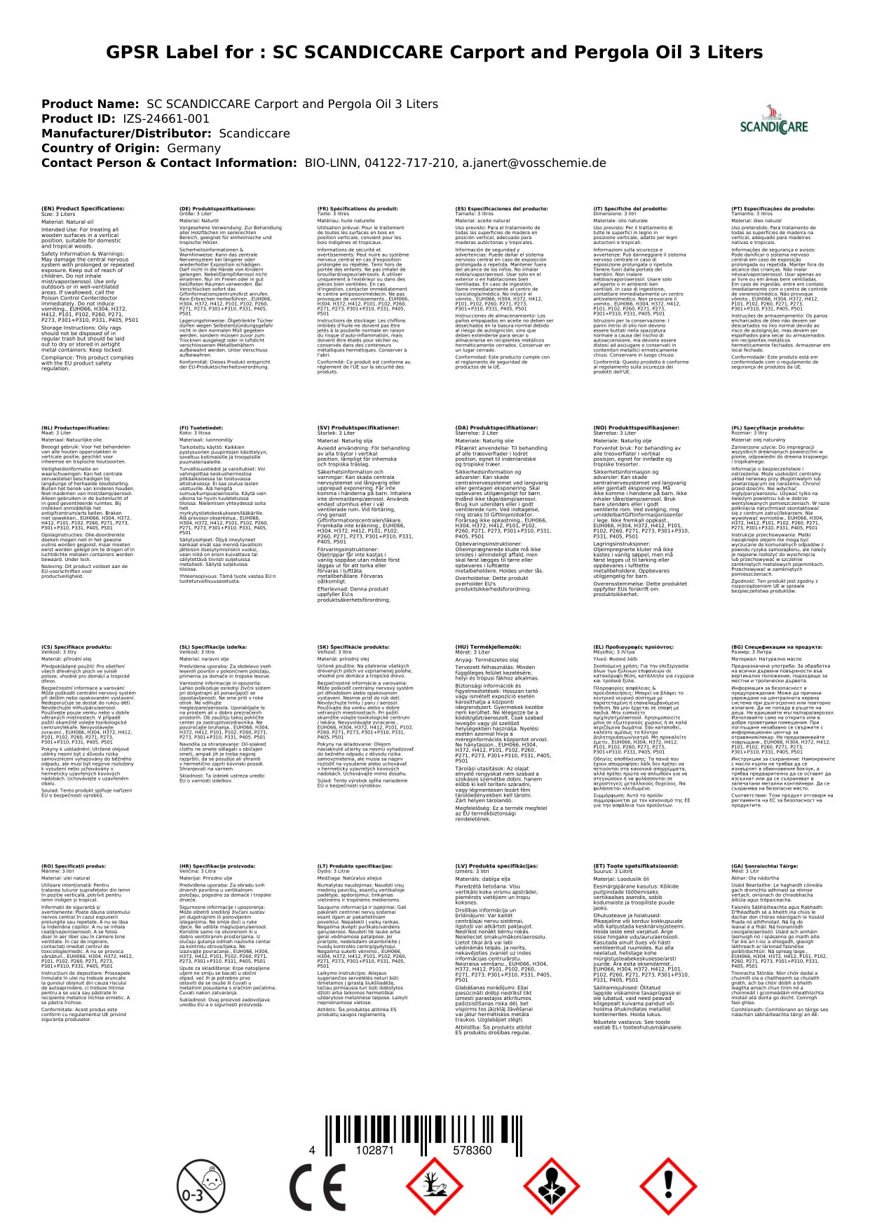 Stellen Sie eine Frage, um mehr über das Produkt zu erfahrenScandiccare Carport- und Pergola-Öl 3 Liter