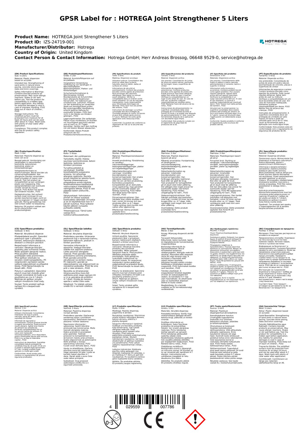 Stellen Sie eine Frage, um mehr über das Produkt zu erfahrenHotrega Fugenfestiger 5 Liter