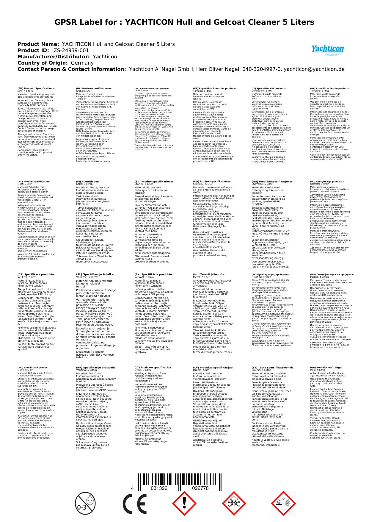 Yachticon Rumpf- und Gelcoat Reiniger 5 Liter