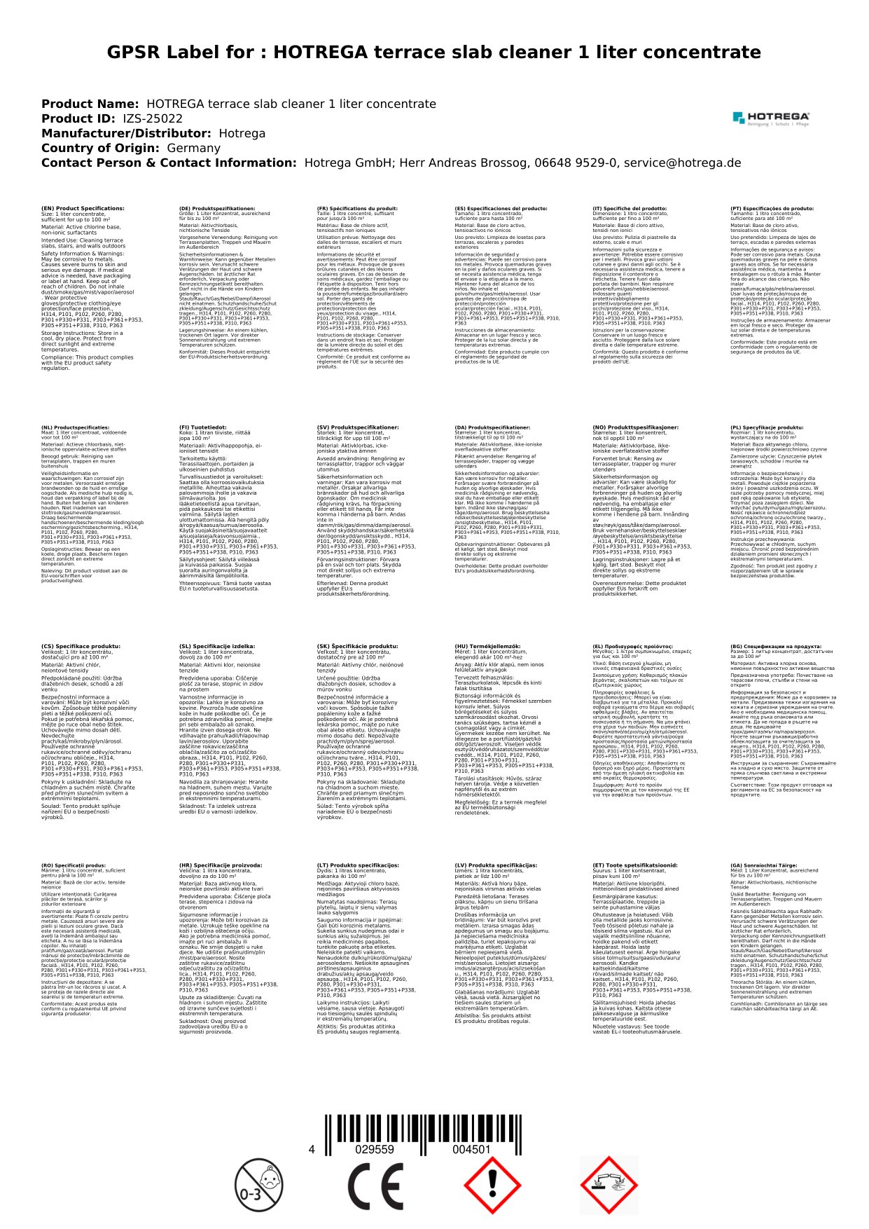 Stellen Sie eine Frage, um mehr über das Produkt zu erfahrenHotrega Terrassenplattenreiniger 1 Liter Konzentrat