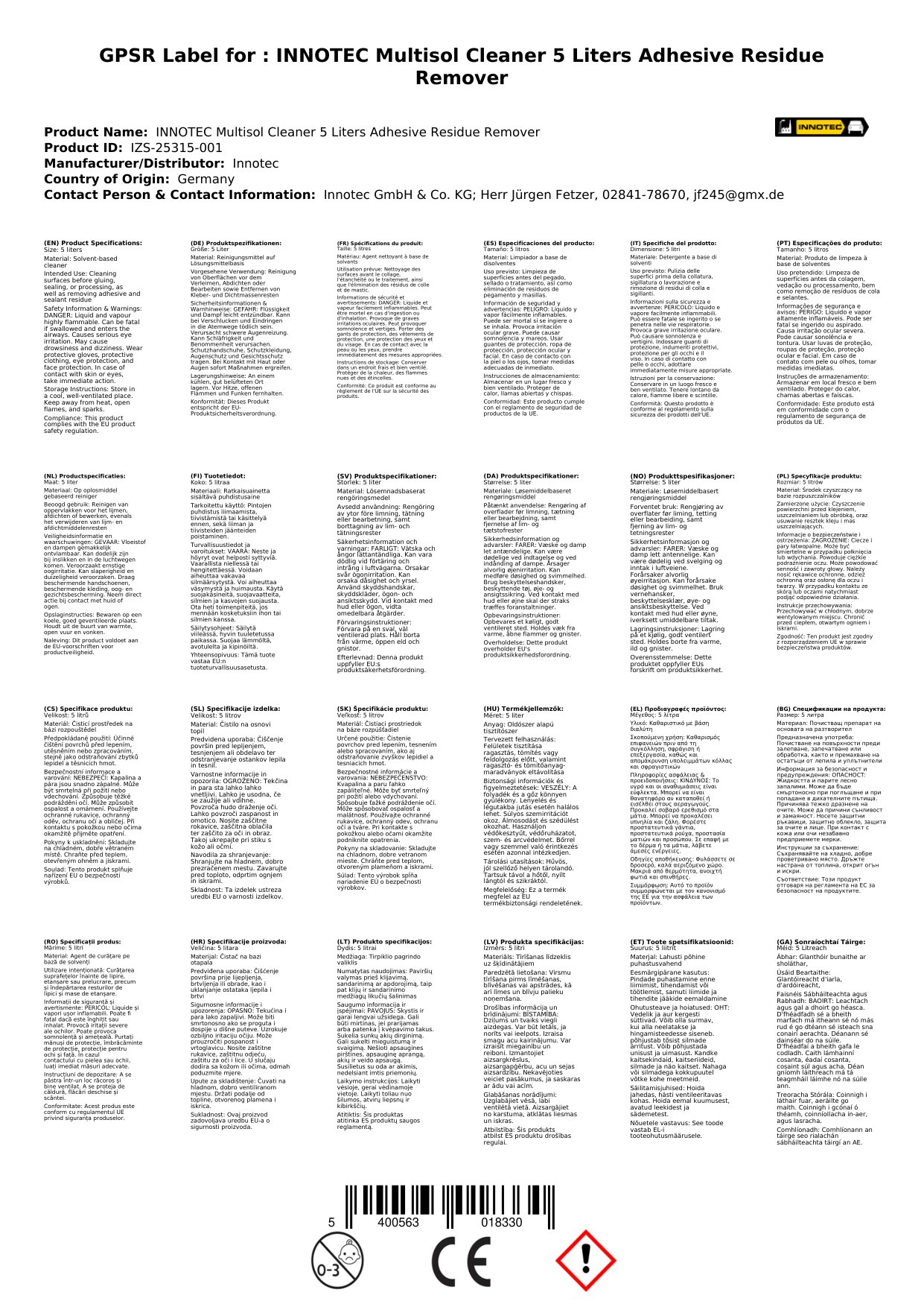 INNOTEC Multisol Reiniger 5 Liter Kleberesteentferner