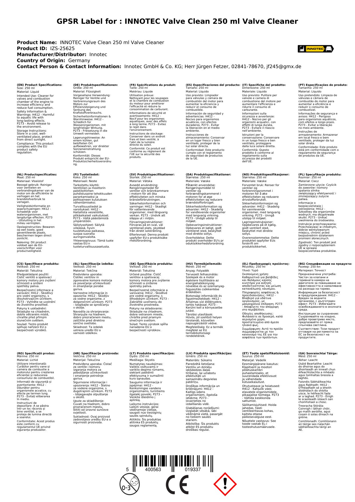 INNOTEC Valve Clean 250 ml Ventilreiniger
