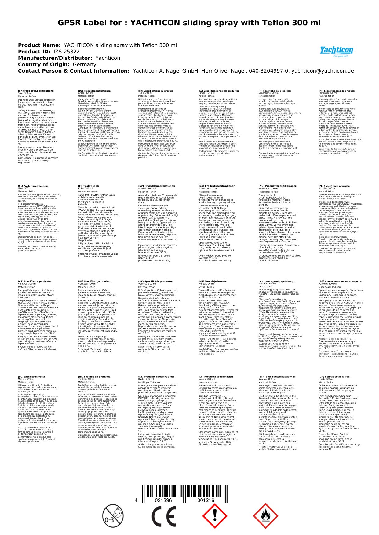 Yachticon Gleitspray mit Teflon Surface Protector 300 ml