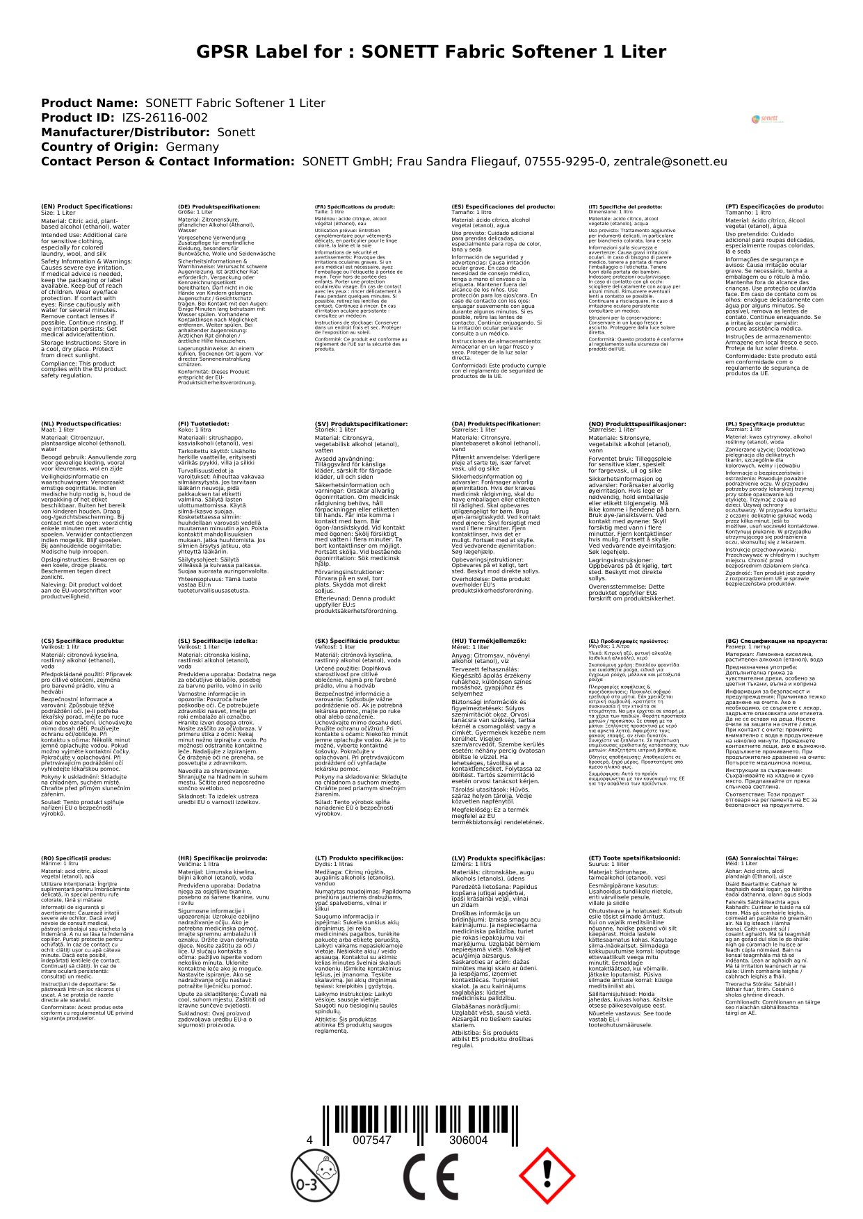 Inhaltsstoffliste nach EC 648/2004: