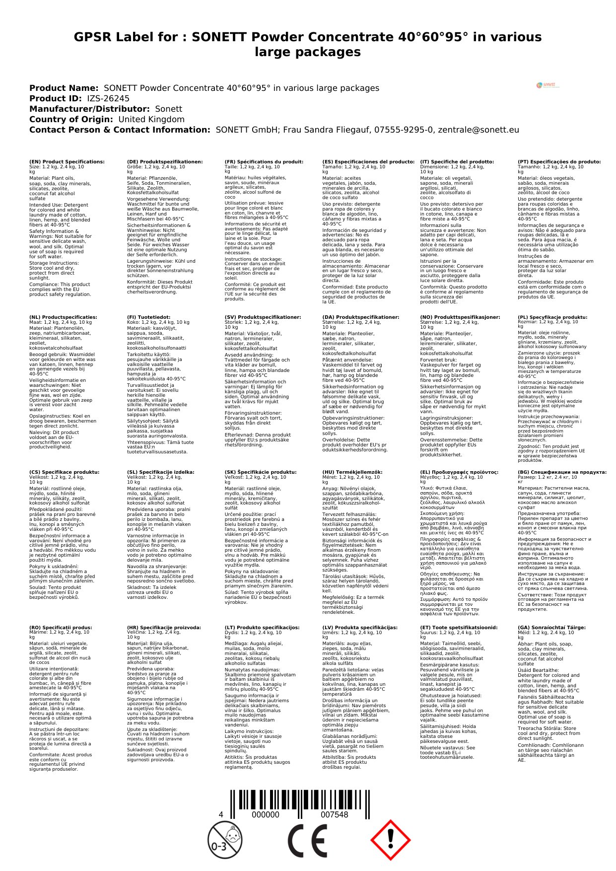 SONETT Waschpulver Konzentrat 40°60°95° in verschiedenen Größengebinden