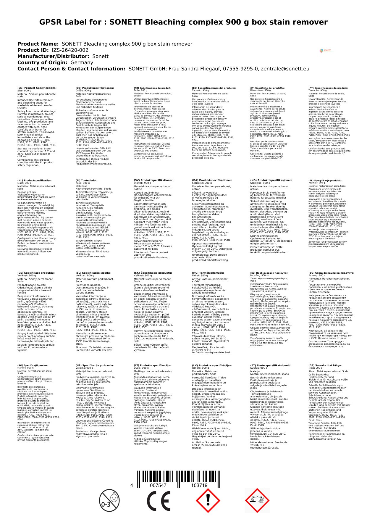 Sonett Bleichkomplex geschlossen, kühl und trocken aufbewahren. Für Kinder unerreichbar aufbewahren.