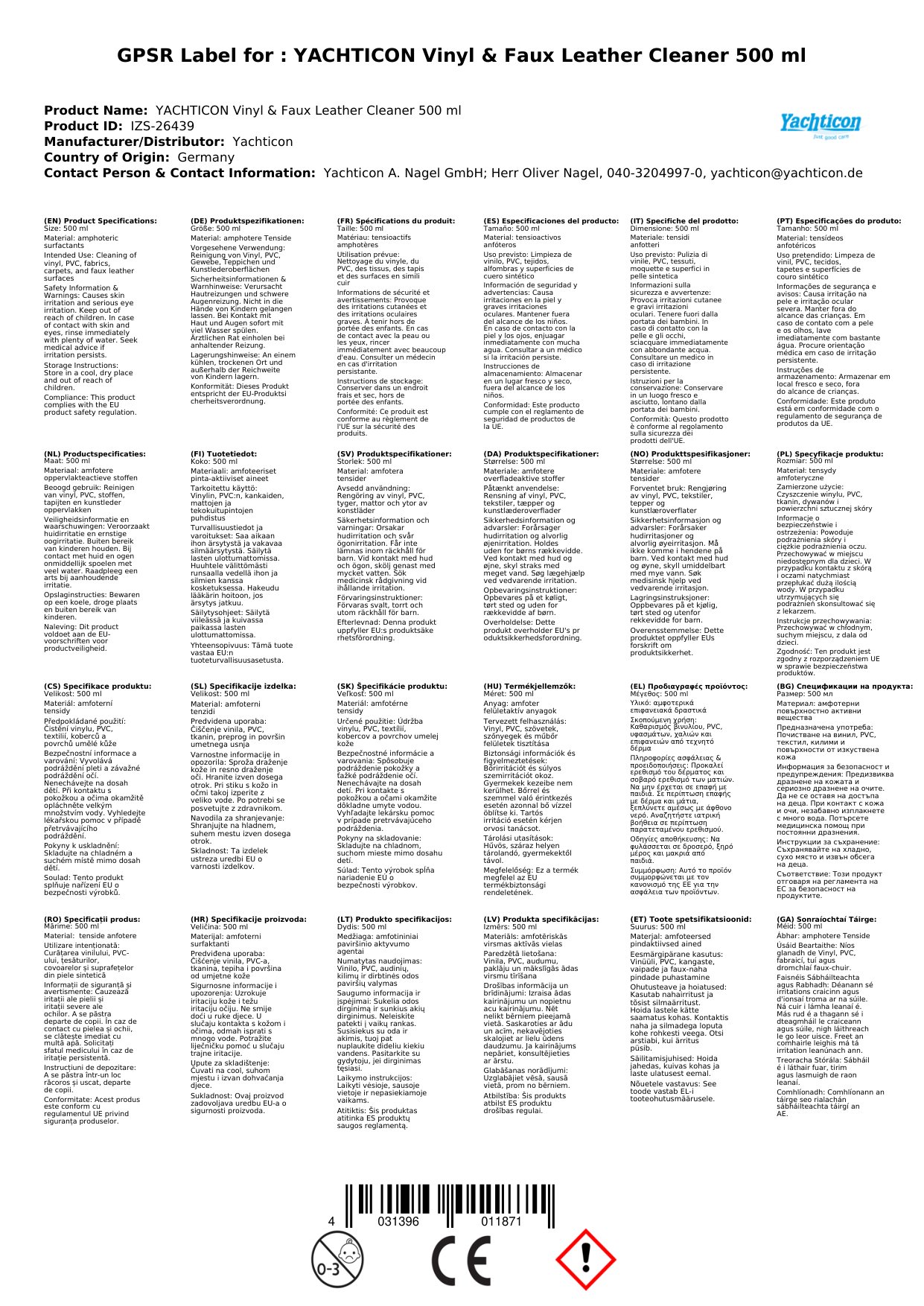 YACHTICON Vinyl & Kunstleder Reiniger 500 ml