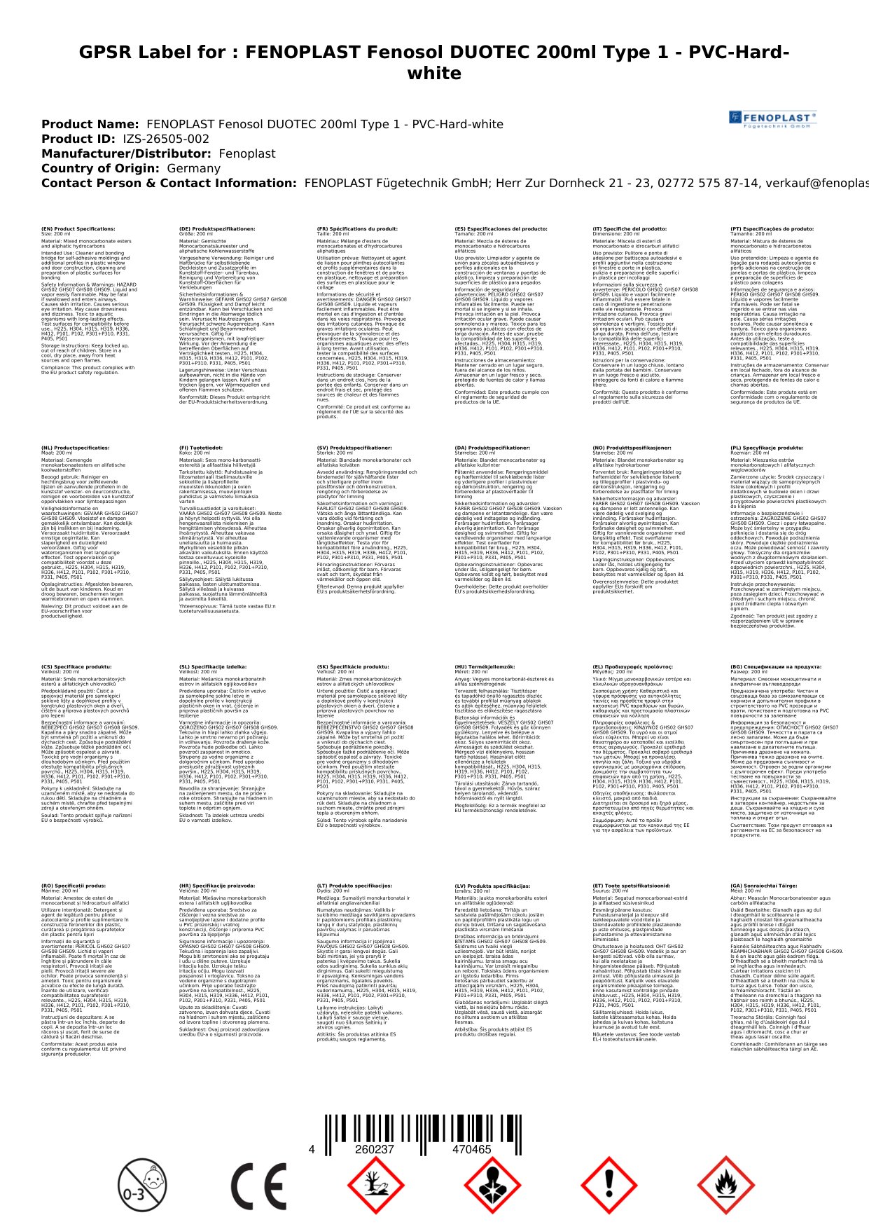 Stellen Sie eine Frage, um mehr über das Produkt zu erfahrenFenoplast Fenosol DUOTEC Typ 1 - 200 ml