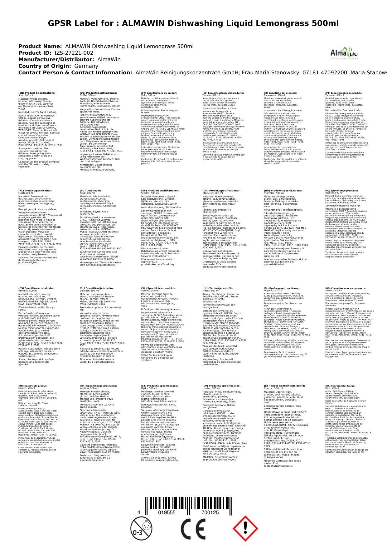 = 5 % < 15 % nichtionische Tenside (Zuckertenside), anionische Tenside (pflanzliche Fettalkoholsulfate), Duftstoffe (etherisches Zitronengrasöl* und Eukalyptusöl*), Citral