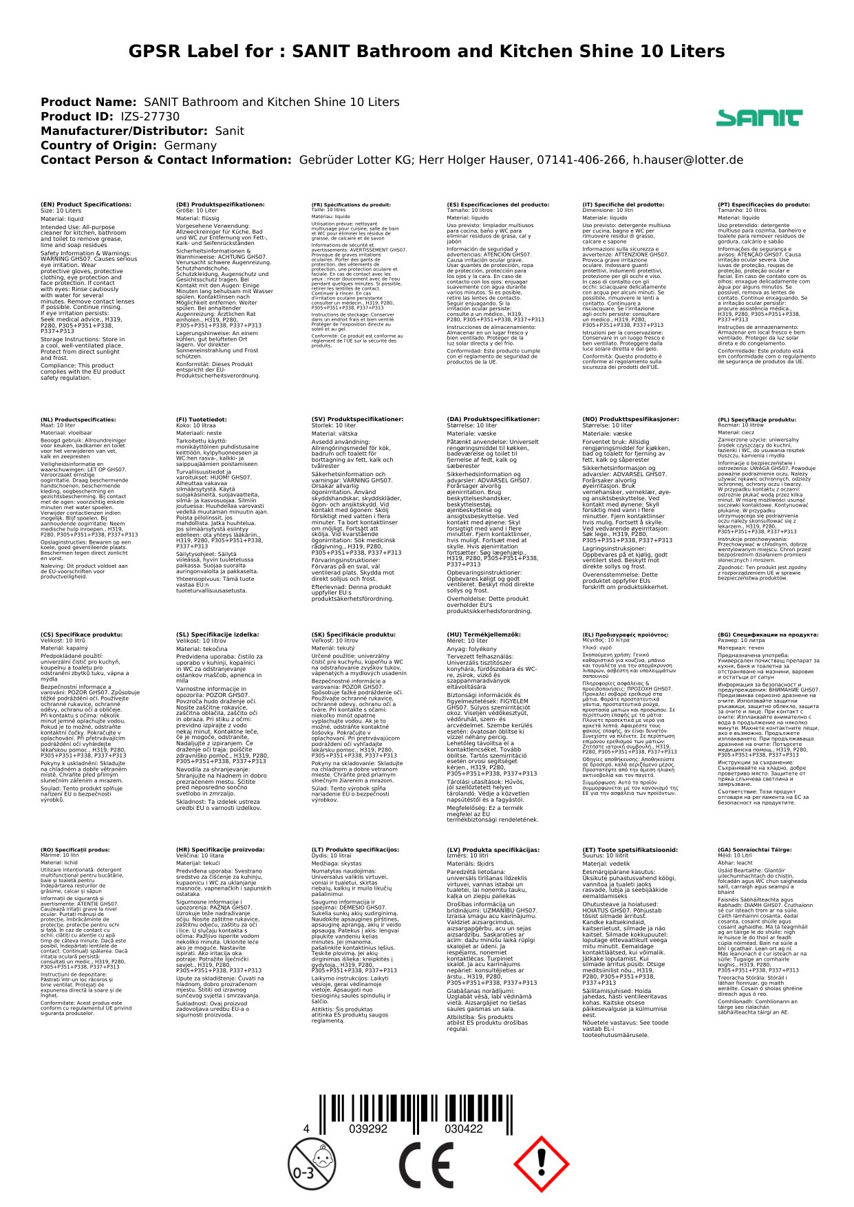 SANIT Bad- & Küchenglanz 10 Liter