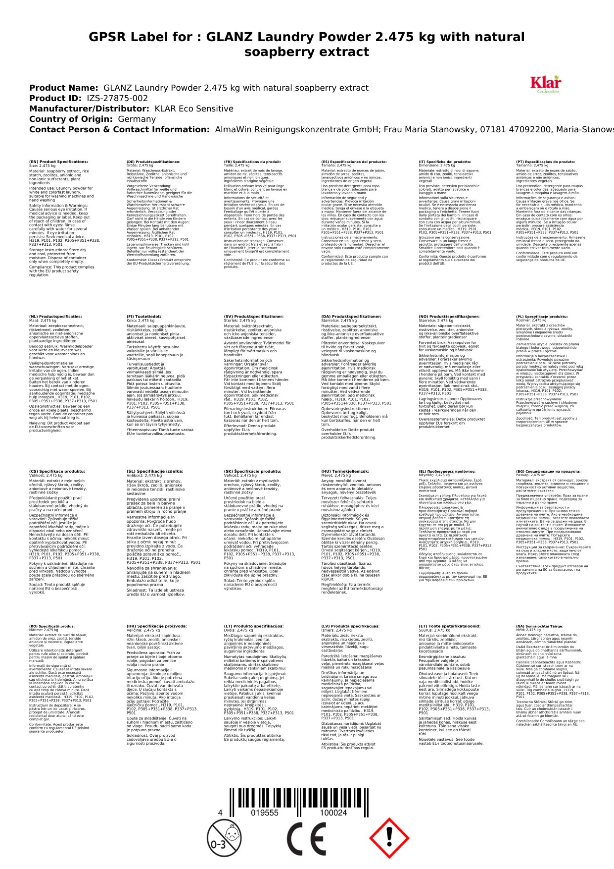 KLAR Vollwaschmittel Pulver 2,475kg mit natürlichem Waschnuss-Extrakt