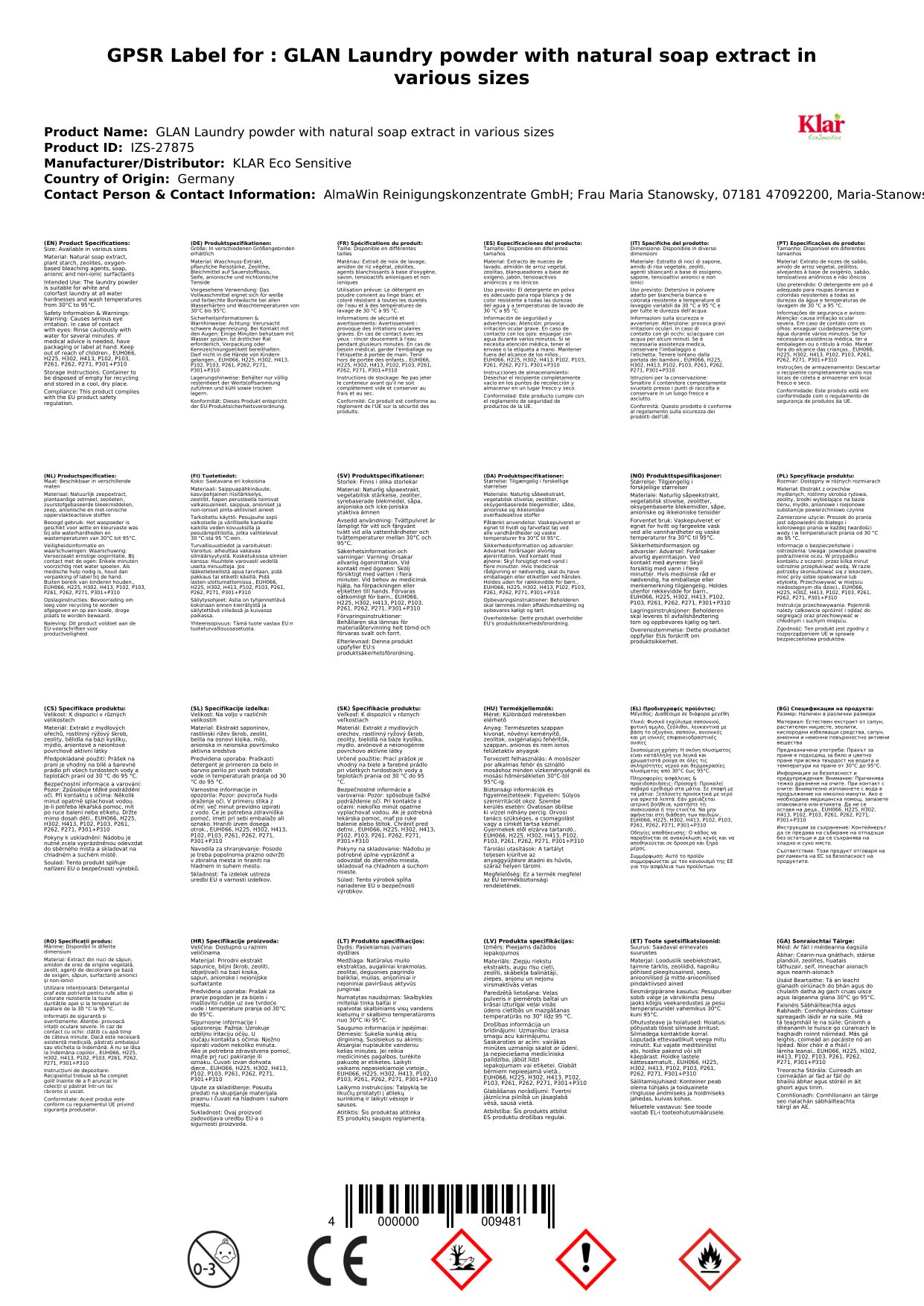 KLAR Vollwaschmittel Pulver mit natürlichem Waschnuss-Extrakt in verschiedenen Größengebinden