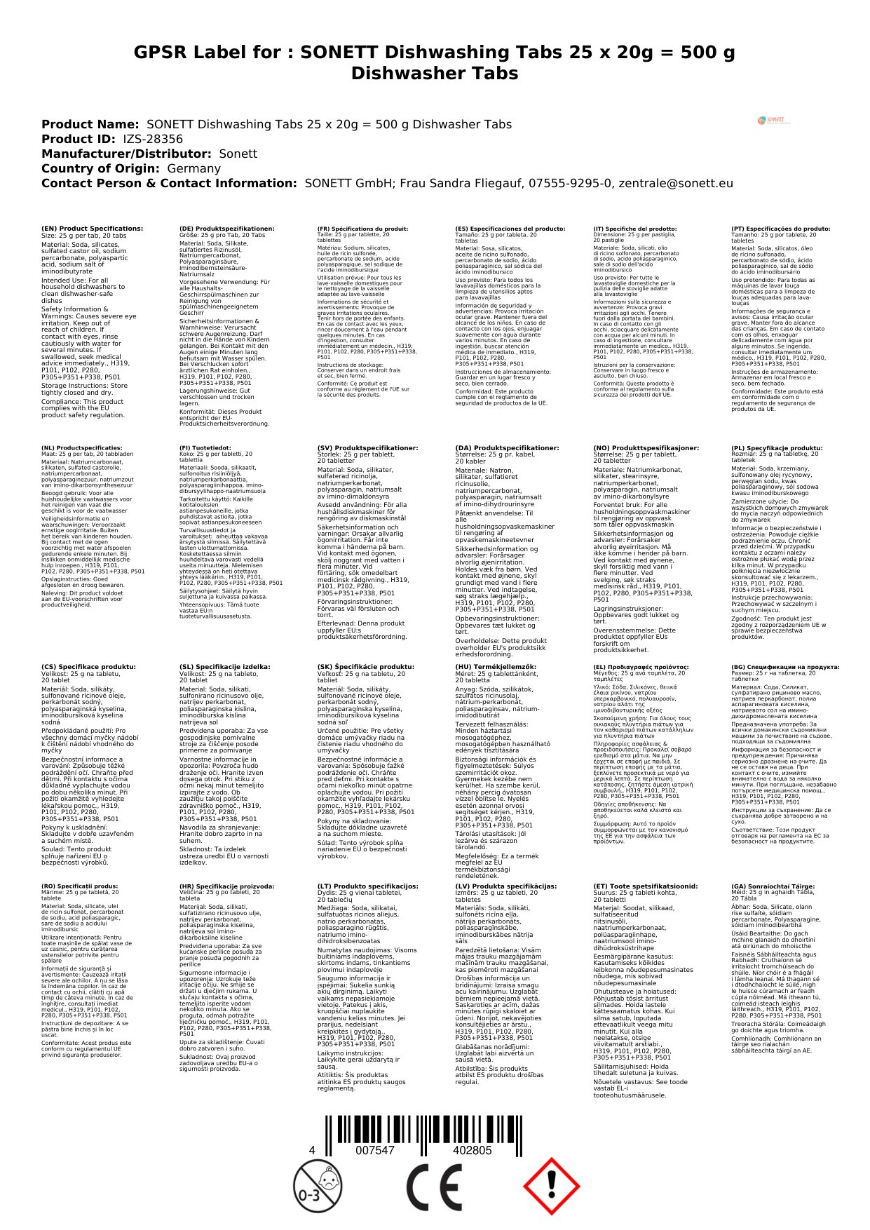 Sonett Tabs für Geschirrspülmaschinen 500g (20 x 25 g)