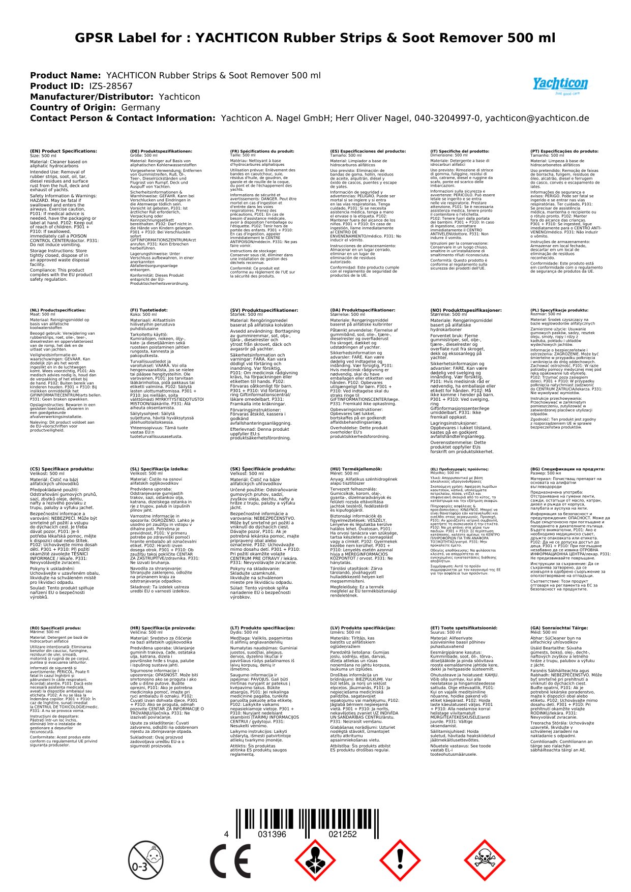 - entfernt mühelos Gummistreifen, Ruß- und Ölablagerungen, sowie Teer an Rumpf und Deck