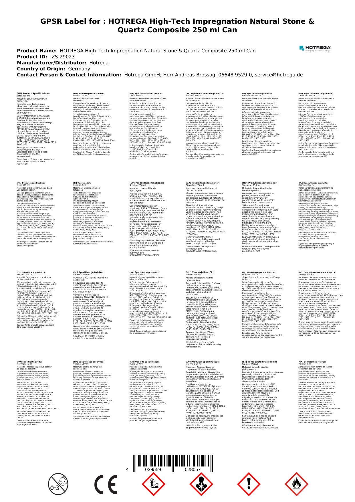 Stellen Sie eine Frage, um mehr über das Produkt zu erfahrenHotrega High-Tech Imprägnierung 250 ml