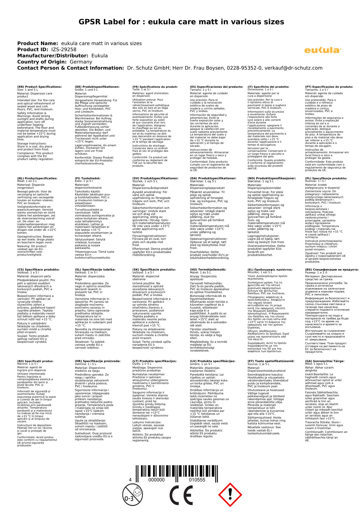 | Anwendungsbereich | Für die Pflege und optische Auffrischung versiegelter Holz- und Korkböden, PVC und Linoleum. |