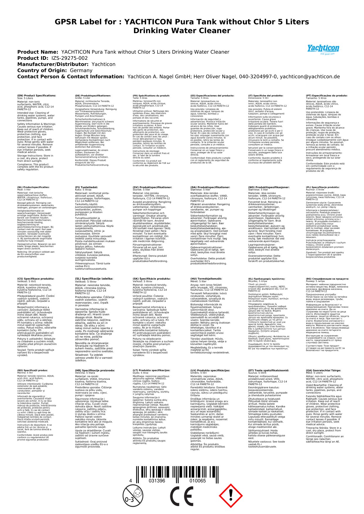 Datenblatt zur Information für die Öffentlichkeit nach Anhang VII Abschnitt D: Pura Tank - ohne Chlor -, Yachticon A. Nagel GmbH, AQUA, CITRIC ACID, PHOSPHORIC ACID, C12-14 PARETH-12.