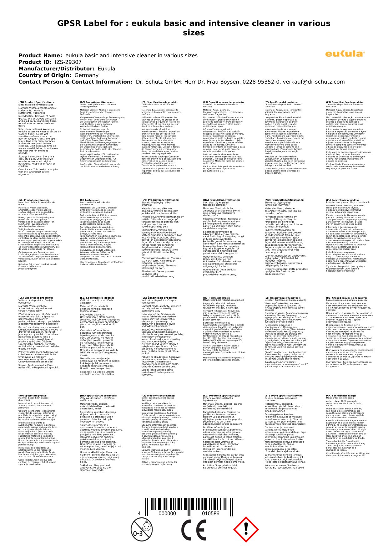 eukula Grund- und Intensivreiniger in verschiedenen Größengebinden