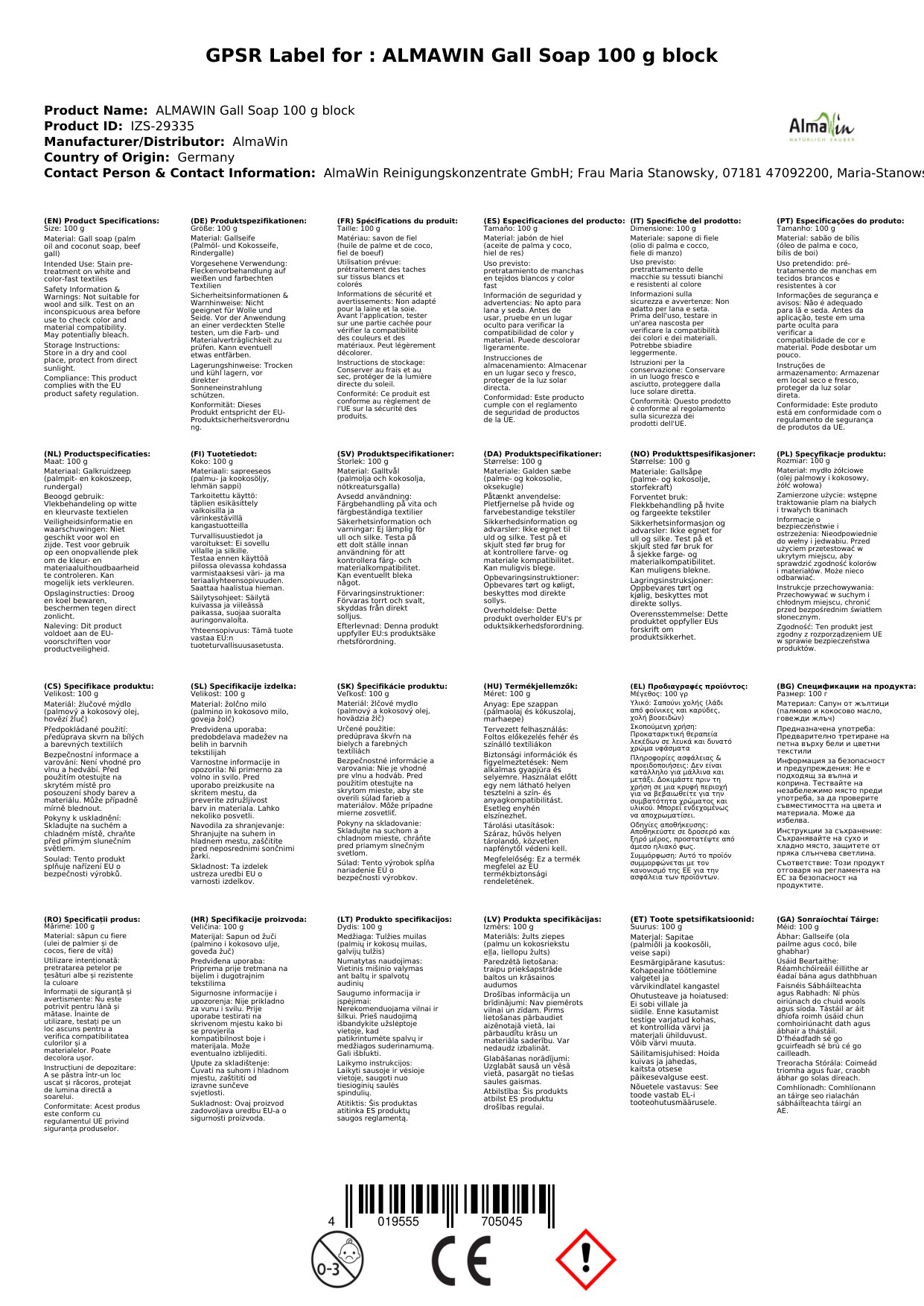 Schon so manche Hausfrau ist an hartnäckigen Flecken von Obst, Fett, Tinte, Blut usw. verzweifelt. Almawin Gallseife entfernt effektiv vielerlei Flecken wie Obst, Kakao, Fettflecken, Kragenschmutz, Fett, Tinte, Blut, Eiweiß usw. aus farbechtem Gewebe mit der Kraft der Seife und dem Naturstoff Ochsengalle. Gallseife ist ein altbewährtes, hochwirksames und ergiebiges Fleckenmittel.