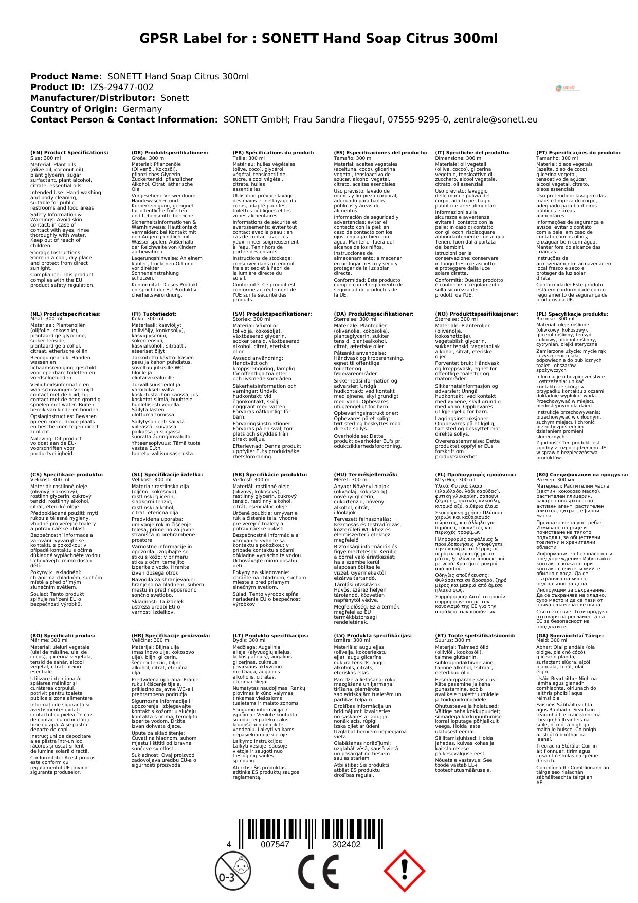 SONETT Handseife Citrus 300ml Spender