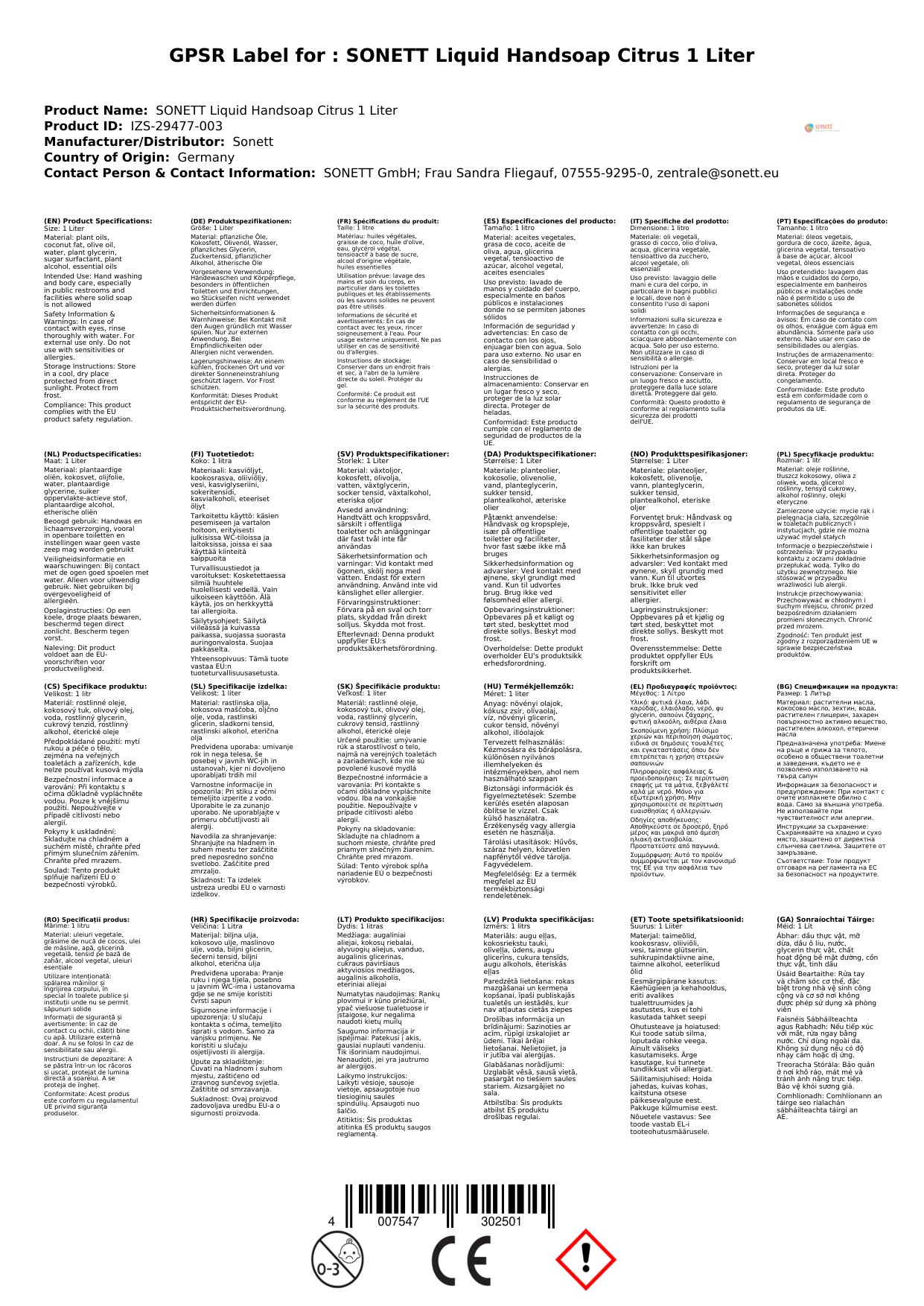 SONETT Handseife Citrus 1 Liter Nachfüllflasche