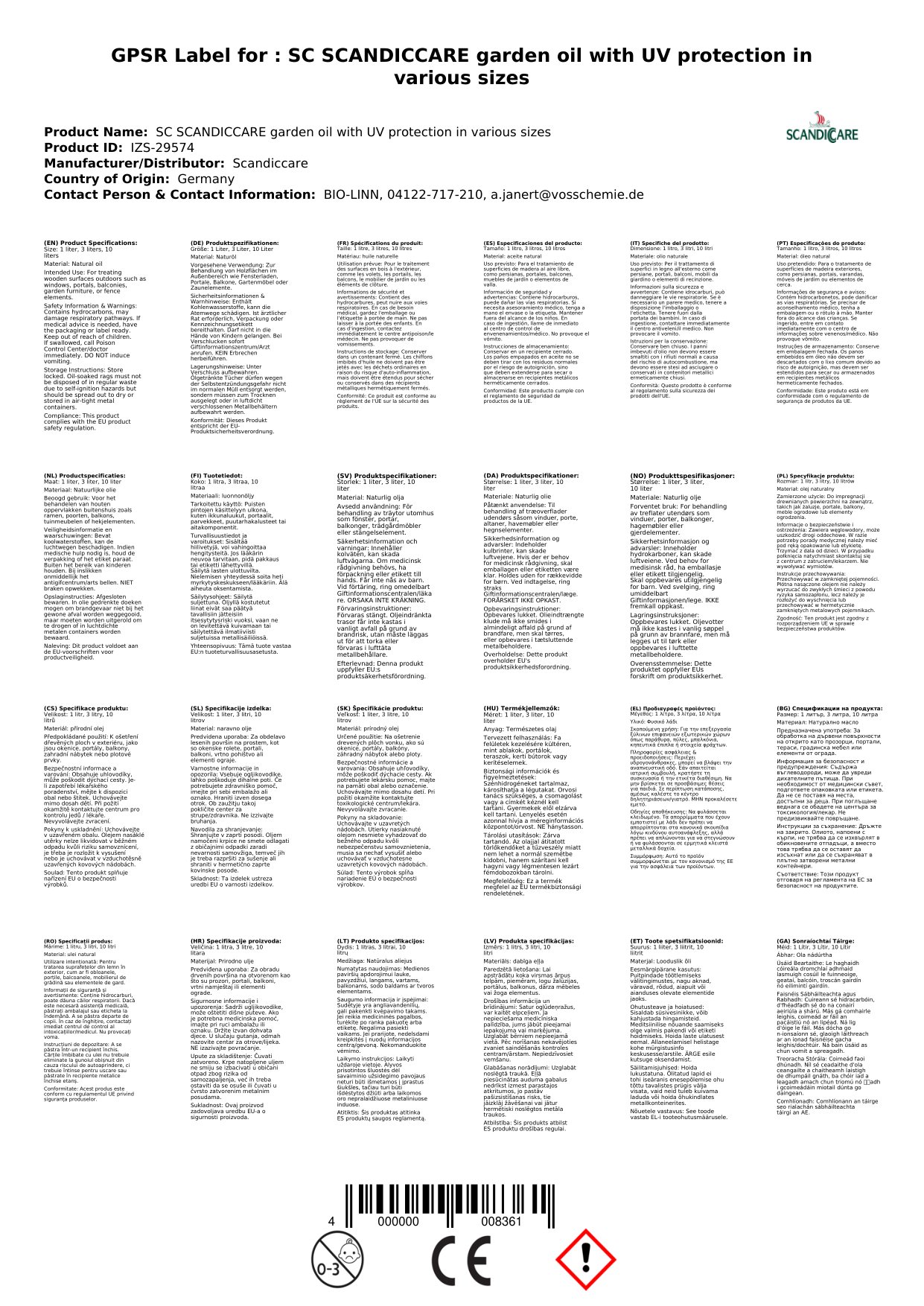 Stellen Sie eine Frage, um mehr über das Produkt zu erfahrenScandiccare Gartenmöbel Öl