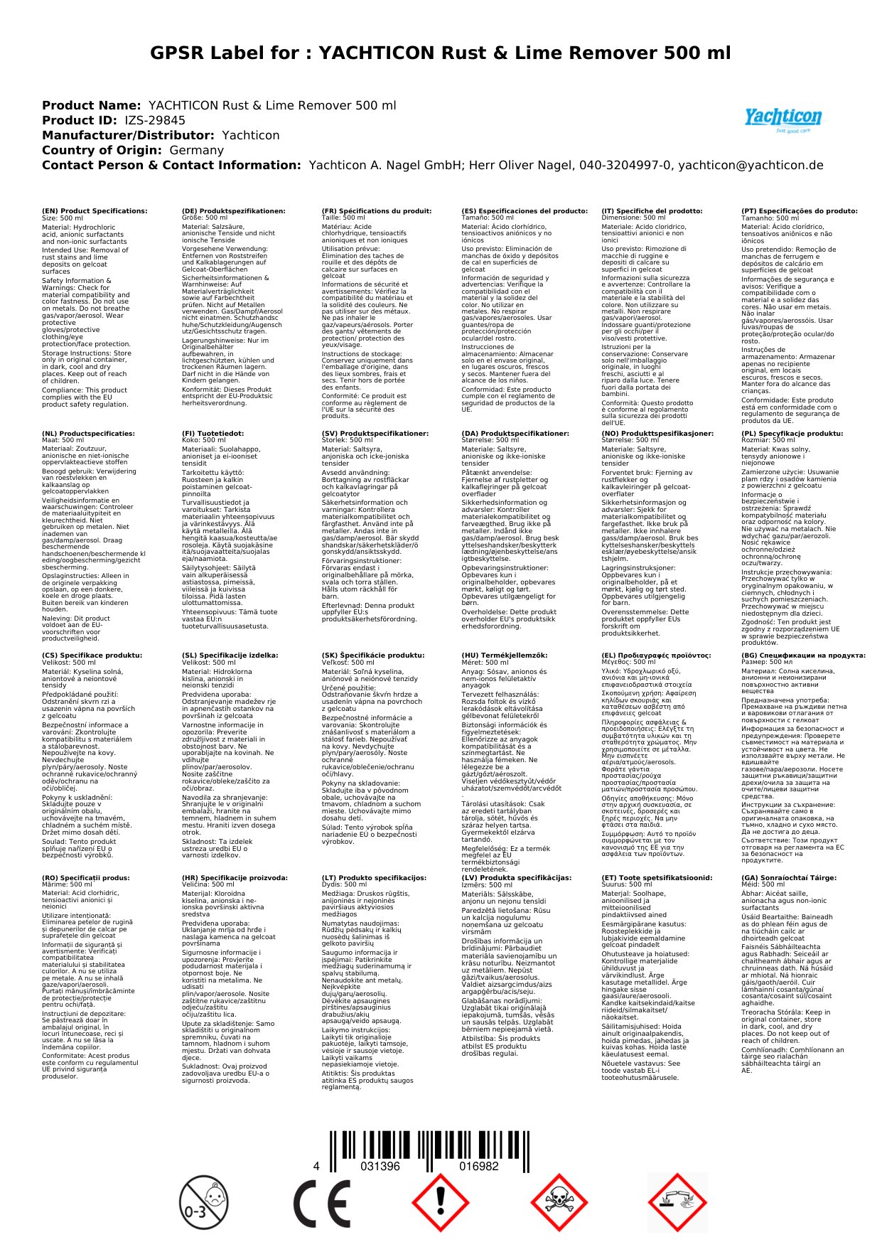 Stellen Sie eine Frage, um mehr über das Produkt zu erfahrenYachticon Rostflecken- und Kalkentferner 500 ml