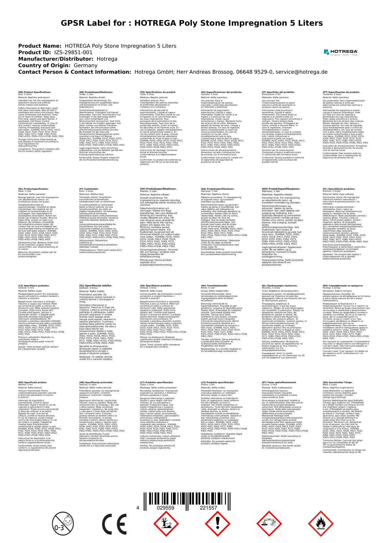 Poly Stein Imprägnierung enthält: Naphtha (Erdöl), mit Wasserstoff behandelte schwere