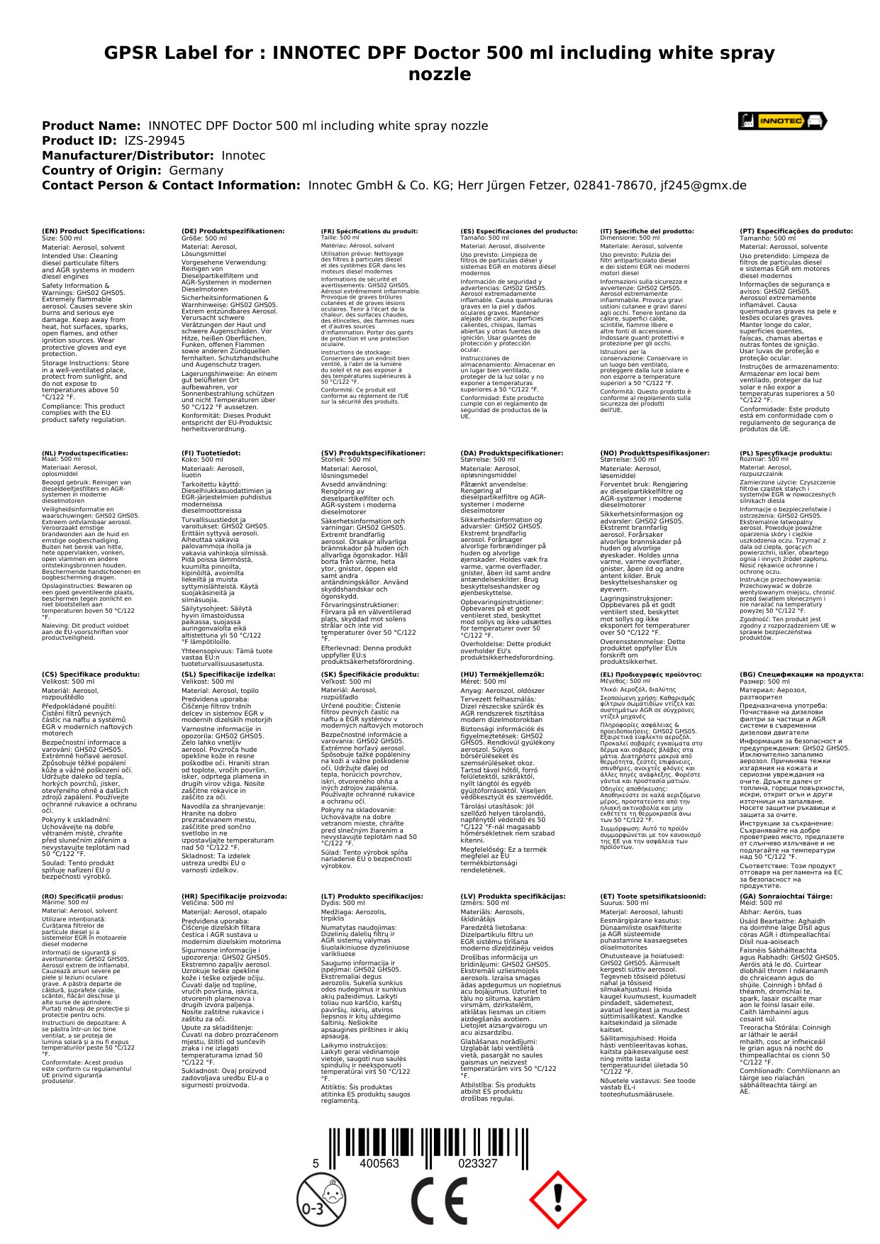 Stellen Sie eine Frage, um mehr über das Produkt zu erfahrenInnotec DPF Doctor incl. Sprühsonde Dieselpartikelfilter-Reiniger 500 ml