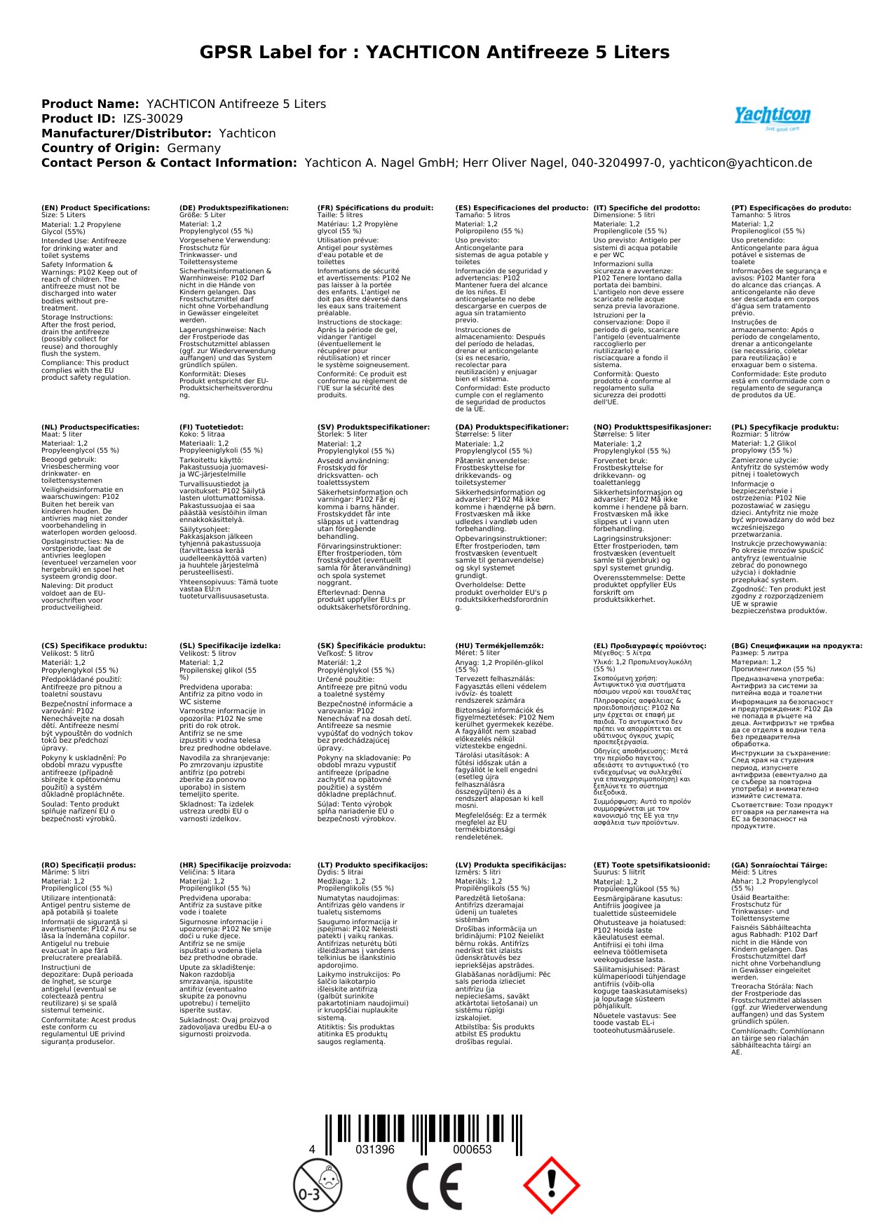 Stellen Sie eine Frage, um mehr über das Produkt zu erfahrenYachticon Frostschutzmittel 5 Liter