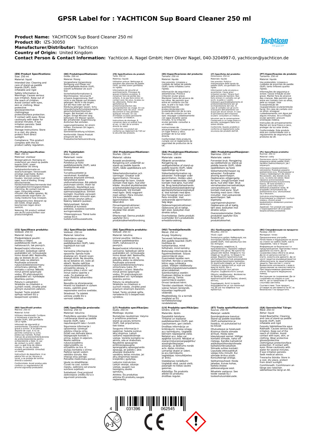 Yachticon Sup Board Reiniger 250 ml