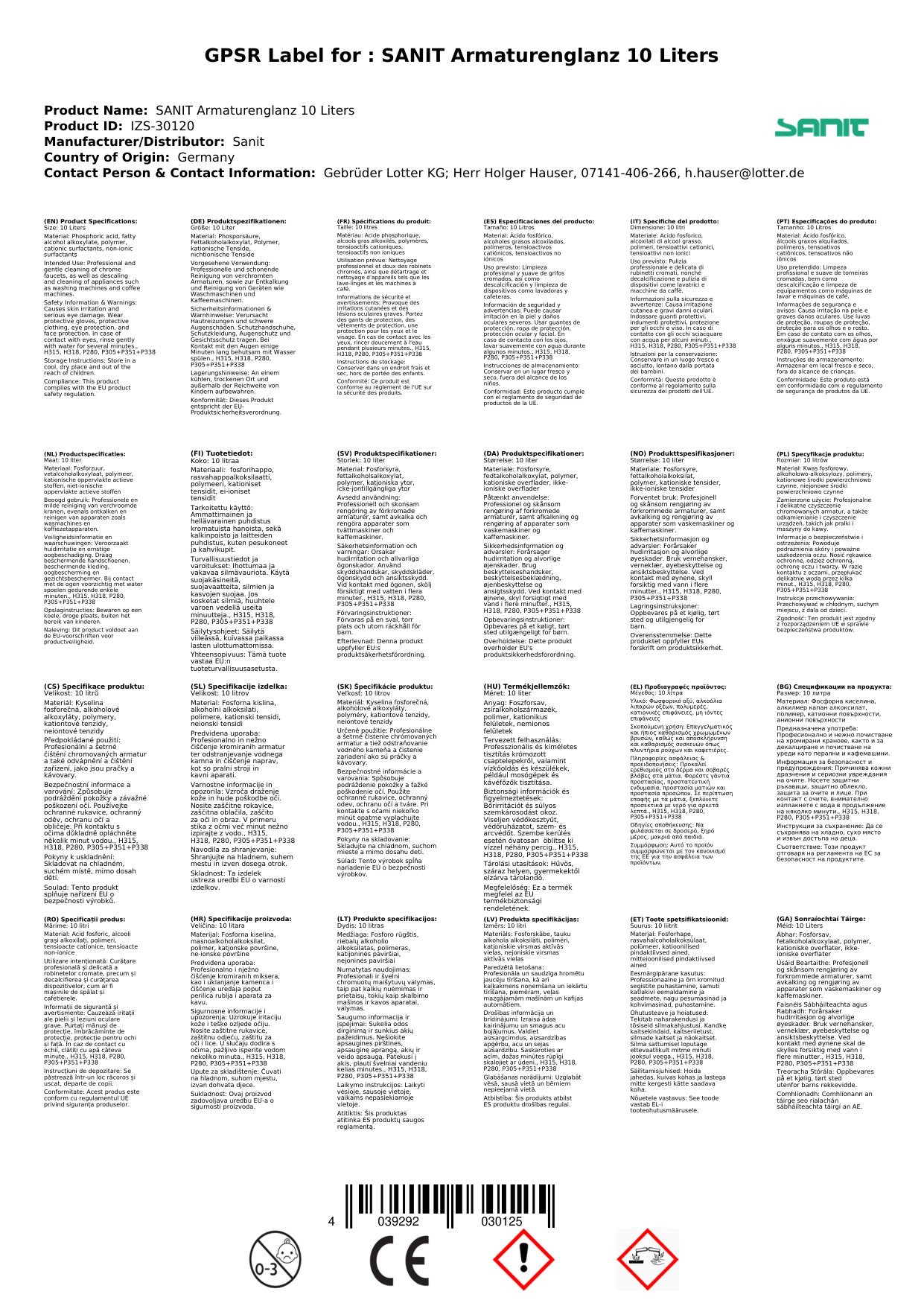 SANIT ArmaturenBlitz (Glanz) 10 Liter