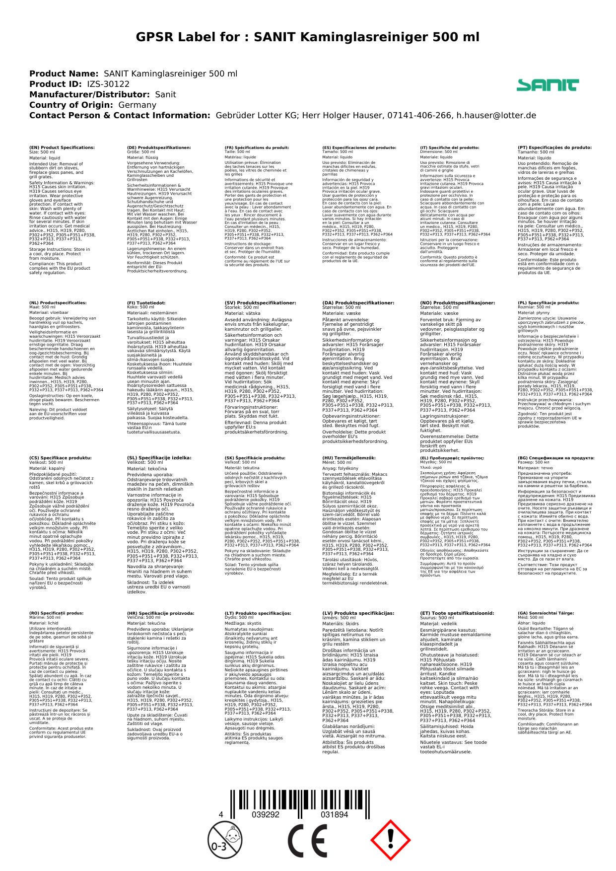 Stellen Sie eine Frage, um mehr über das Produkt zu erfahrenSANIT Kaminglasreiniger 500 ml