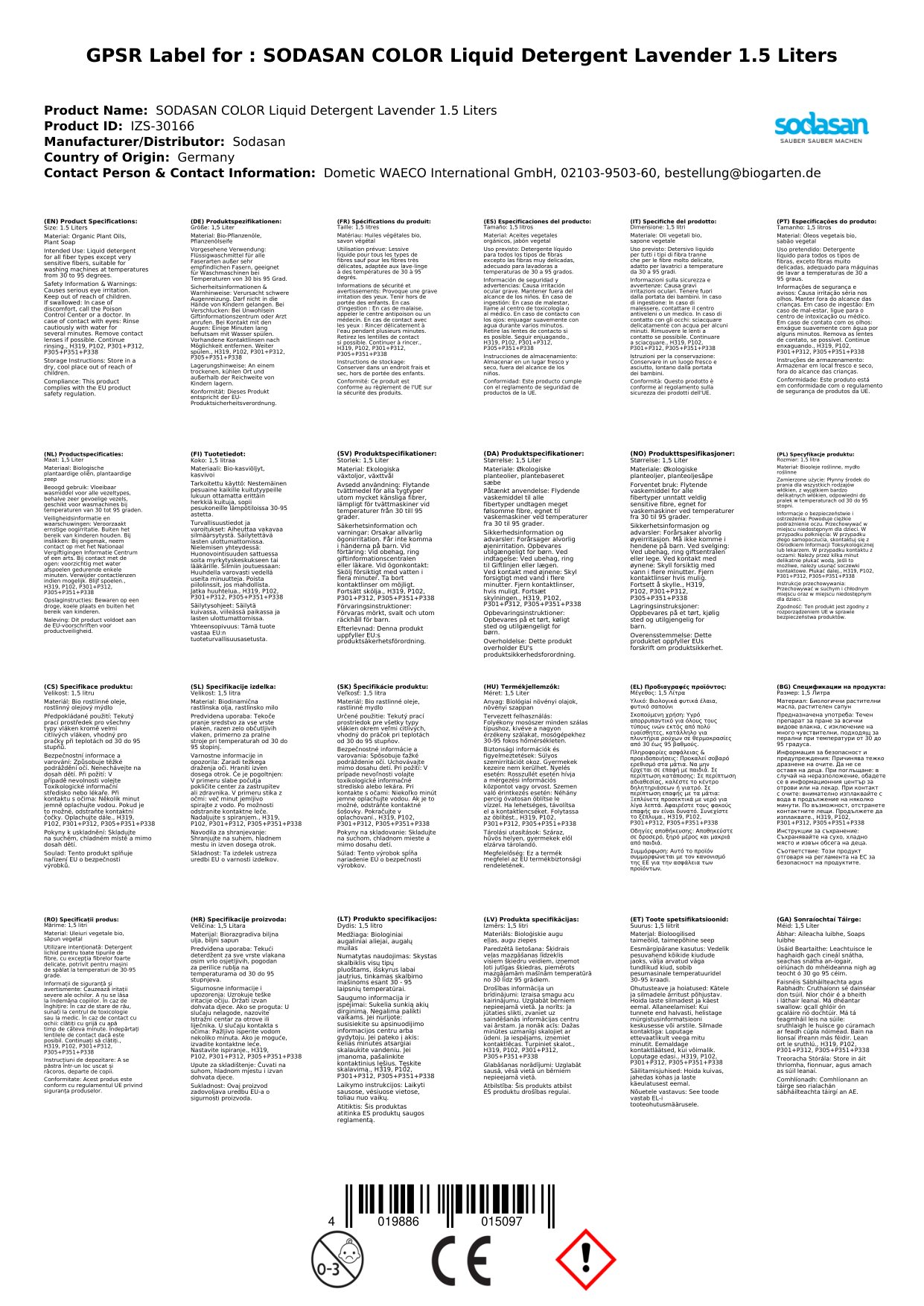 Kennzeichnungsauslösende Komponente: Alkylpolyglucoside, Natriumcarbonat, Natriumlaurylsulfat, Ethanol, natürliches Parfümöl